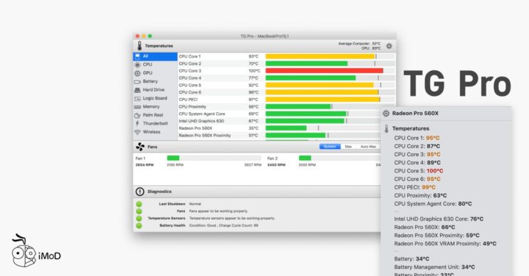 โปรแกรมนี้เหมาะกับการใช้งานเพื่อยืดอายุการใช้งานเครื่อง โดยเฉพาะกับ MacBook หรือ iMac ในการดูอุณหภูมิ CPU, GPU, Logic Board หรือ Hard Drive รวมถึงการตรวจสอบสภาพของแบตเตอรี่ และการวินิจฉัยฮาร์ดแวร์อื่น ๆ ตั้งให้ว่าหากอุณหภูมิสูงขึ้นค่อยเร่งรอบพัดลมด้วยตัวเองหรือให้ TG Pro ทำให้อัตโนมัติ
