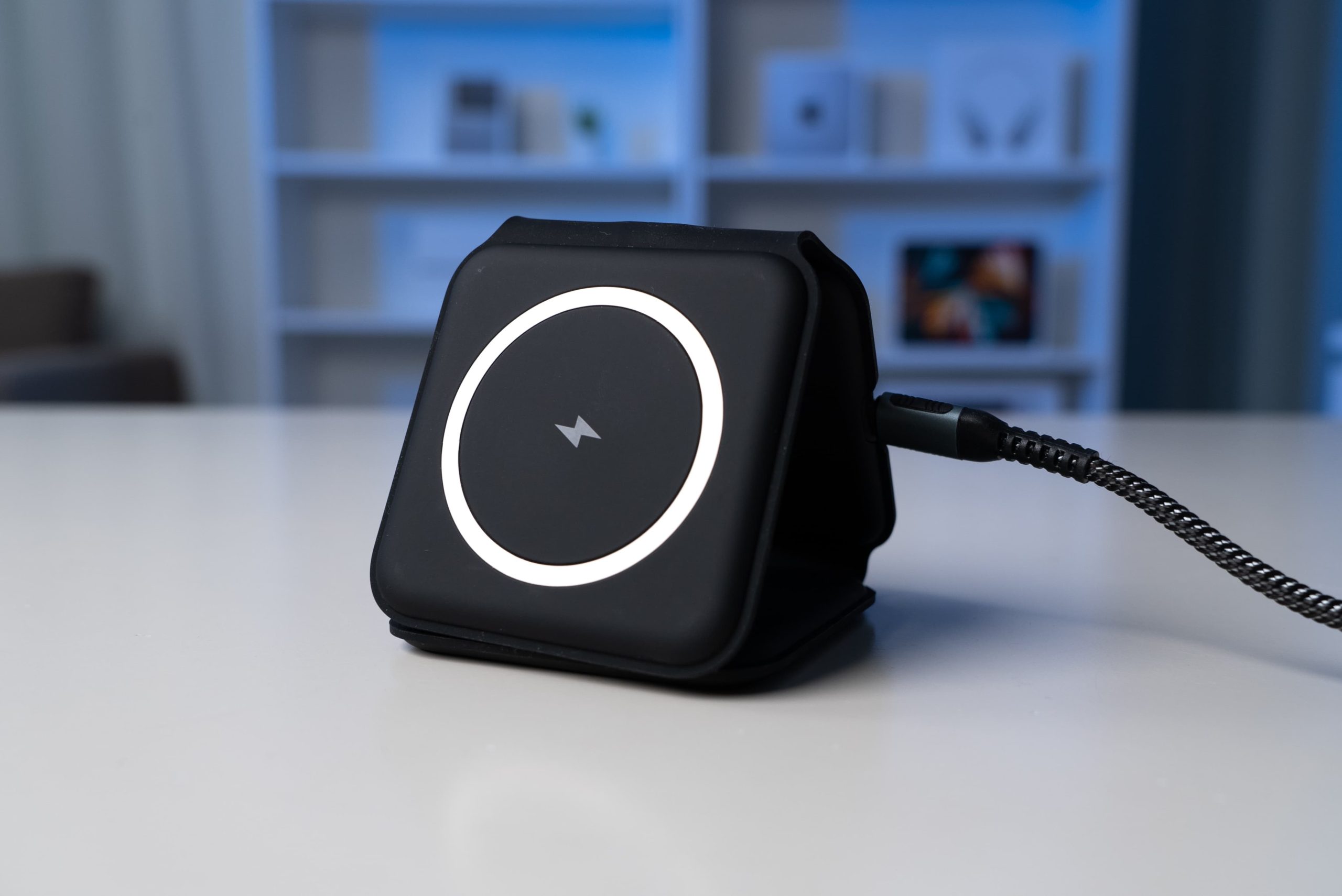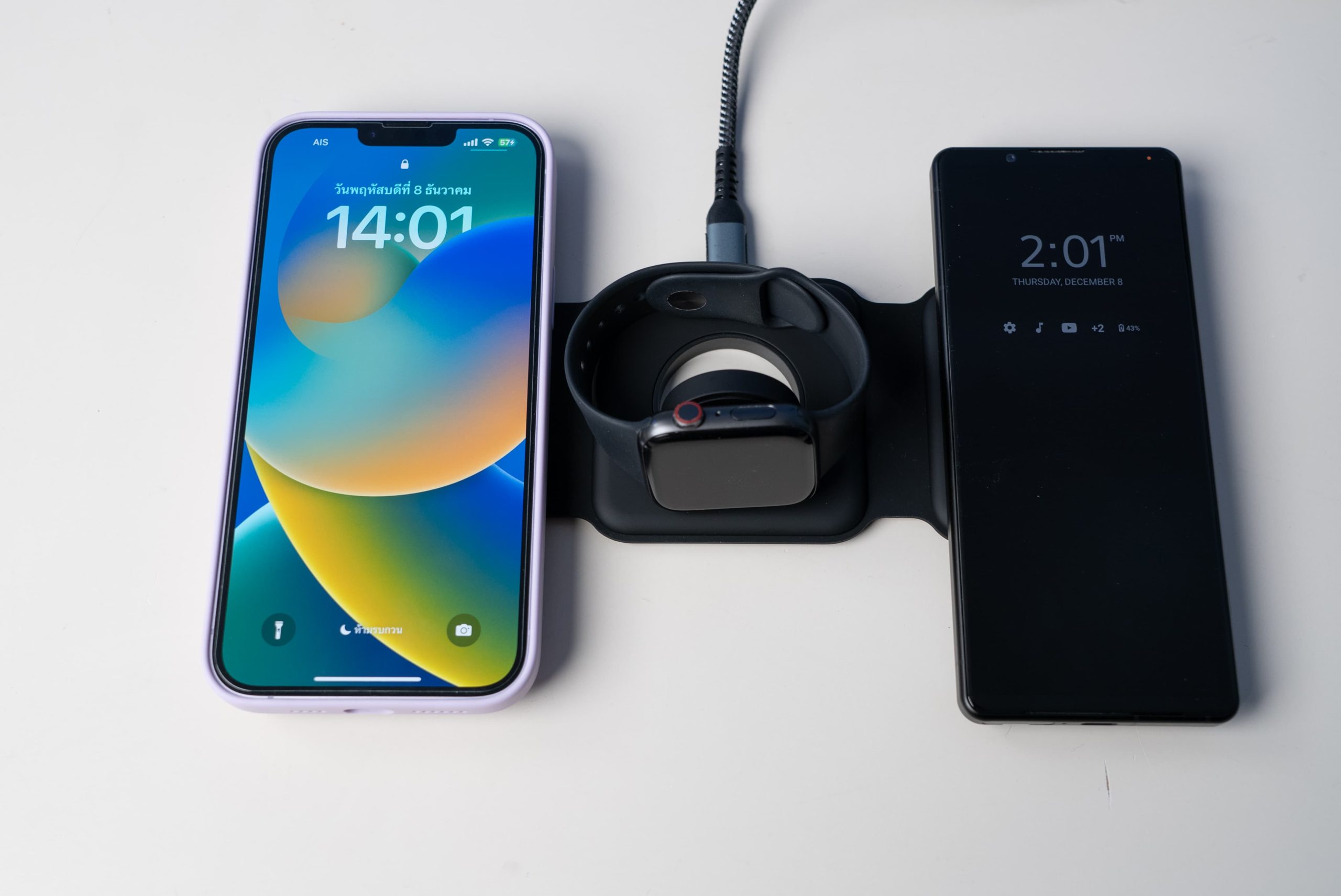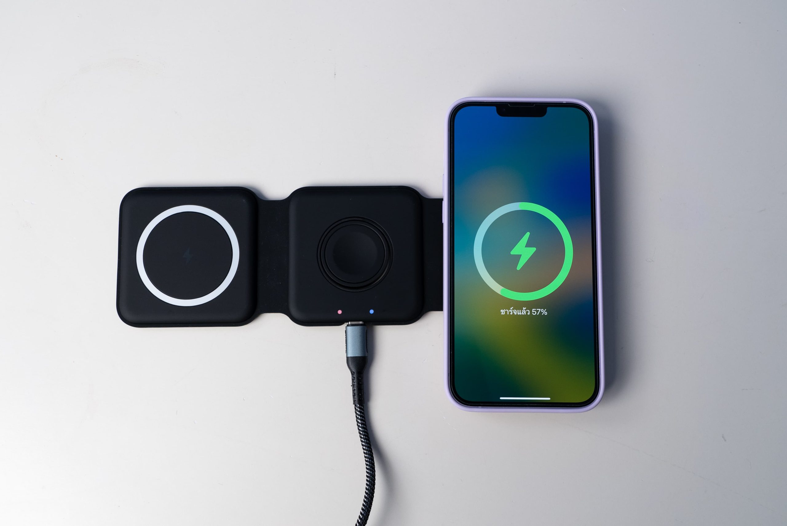 เมื่อเสียบสาย USB-C และอะแดปเตอร์แล้ว (แนะนำให้ใช้อะแดปเตอร์ 30W ขึ้นไป เพื่อรองรับการชาร์จเร็วสูงสุด 15W) สามารถวางอุปกรณ์ที่ต้องการจะชาร์จลงไปได้เลย