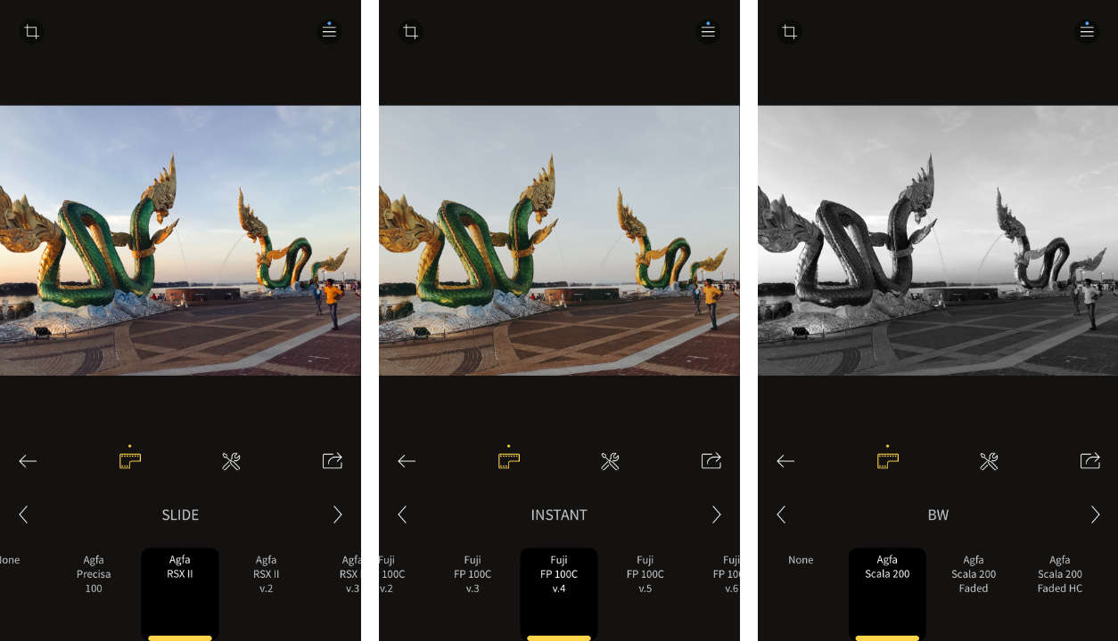 แอปแต่งภาพใส่ฟิลเตอร์โทนฟิล์มอนาล็อกไปจนถึงดิจิทัล ด้วยฟิลเตอร์ที่มีให้เลือกใช้งานถึง 5 สไตล์ มากกว่า 150 แบบ ช่วยให้ผู้ใช้สามารถแต่งภาพของตนเองให้ดูย้อนสมัย มีความคลาสิก สร้างอารมณ์และความทรงจำที่ดีได้ด้วยการคุมโทนสีของภาพให้เป็นแนวฟิล์มผ่านขั้นตอนที่ง่ายมากๆ