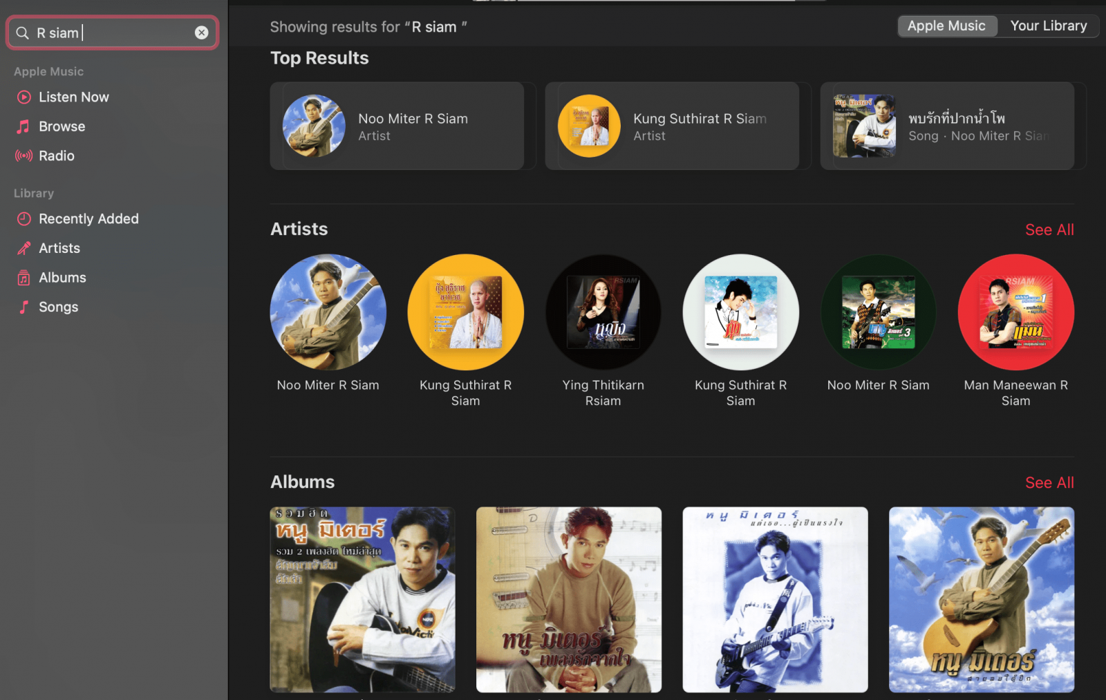ใครที่ใช้ Apple Music อยู่ก็สามารถค้นหาเพลง หรือชื่อศิลปินจากค่าย RS แล้วฟังกันได้เลย