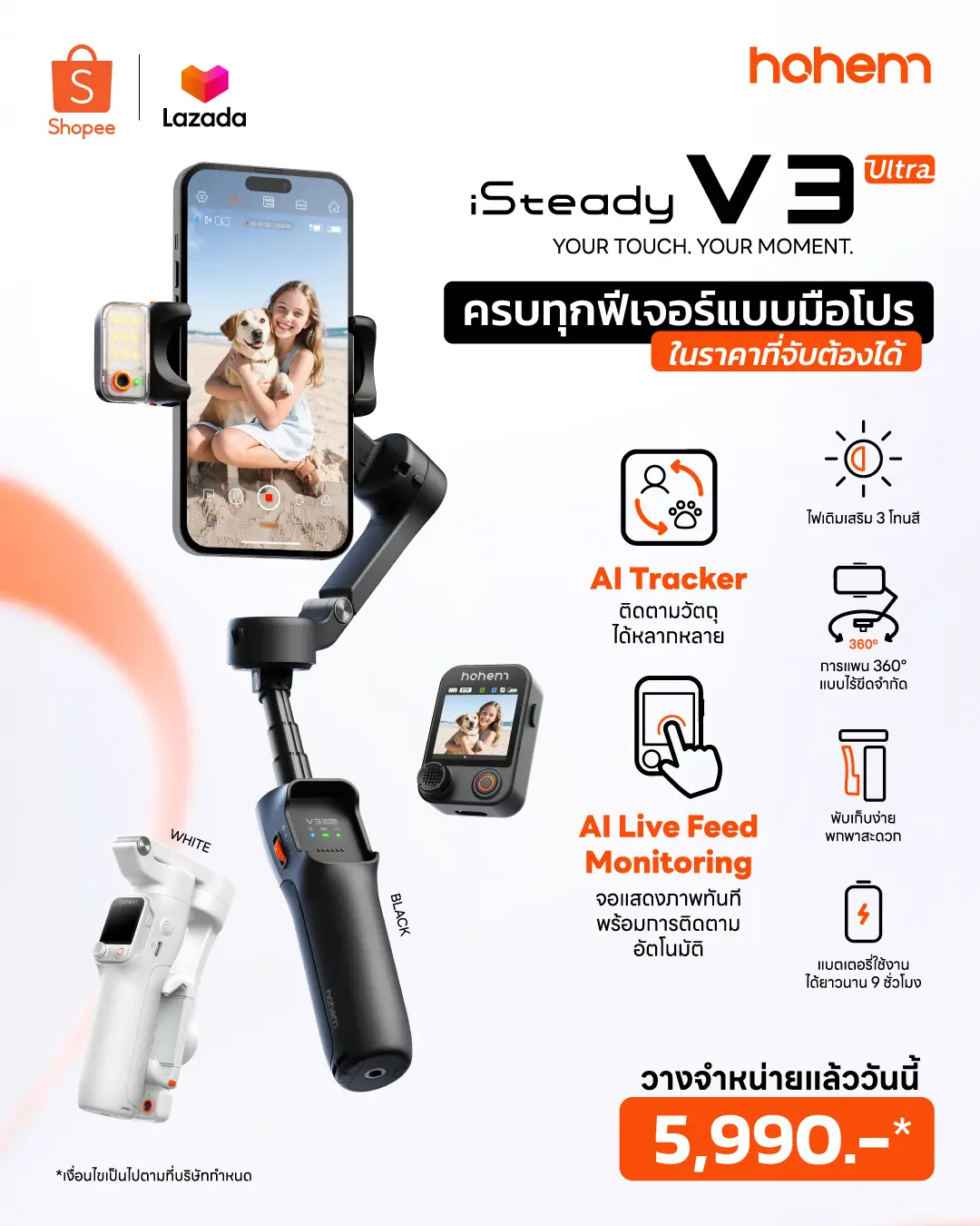 RTB เปิดตัวไม้กันสั่น “Hohem iSteady V3 Ultra” รุ่นเทคโนโลยี Multimodal AI Tracker ถ่ายคอนเทนต์ระดับมืออาชีพ
