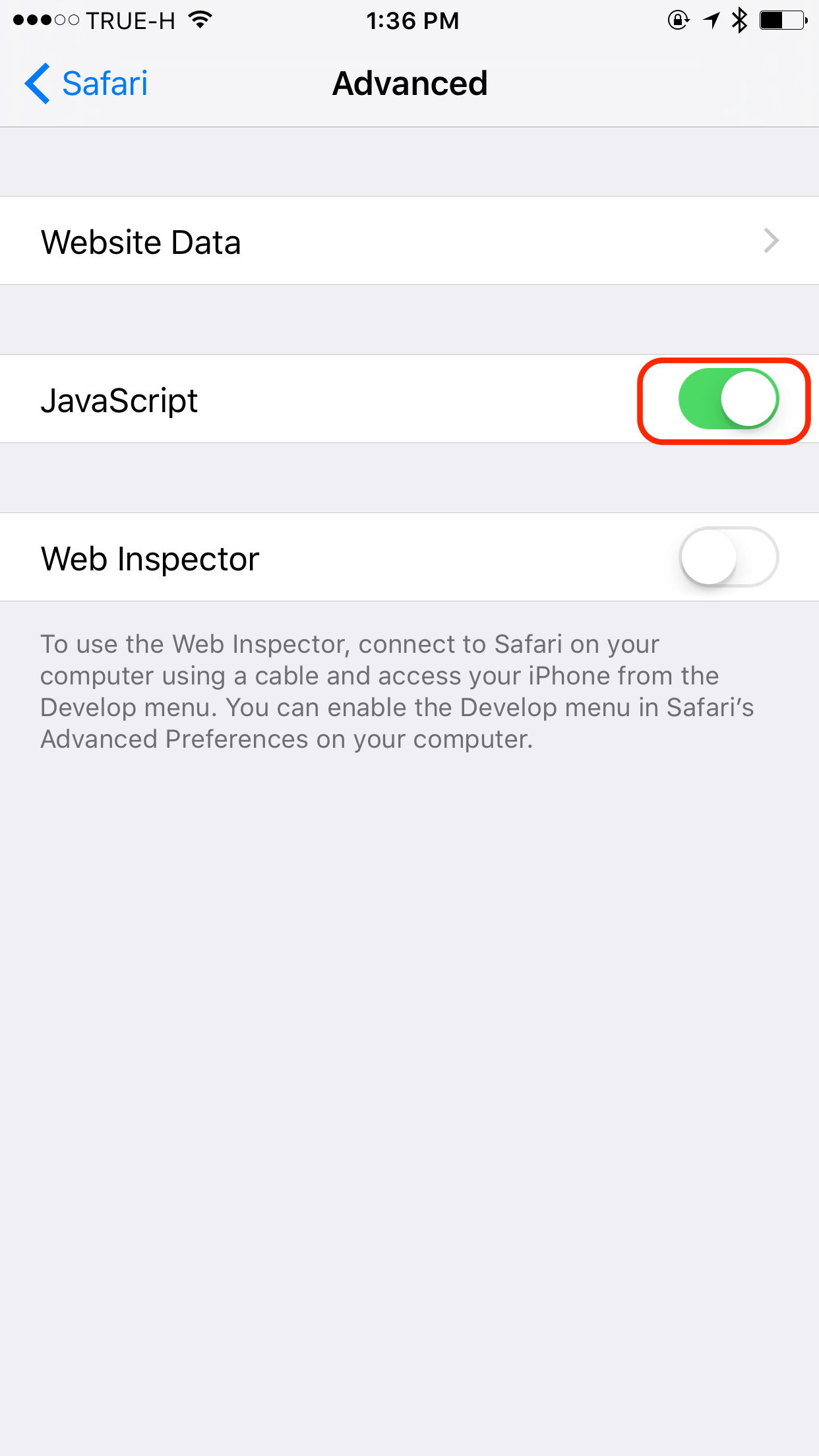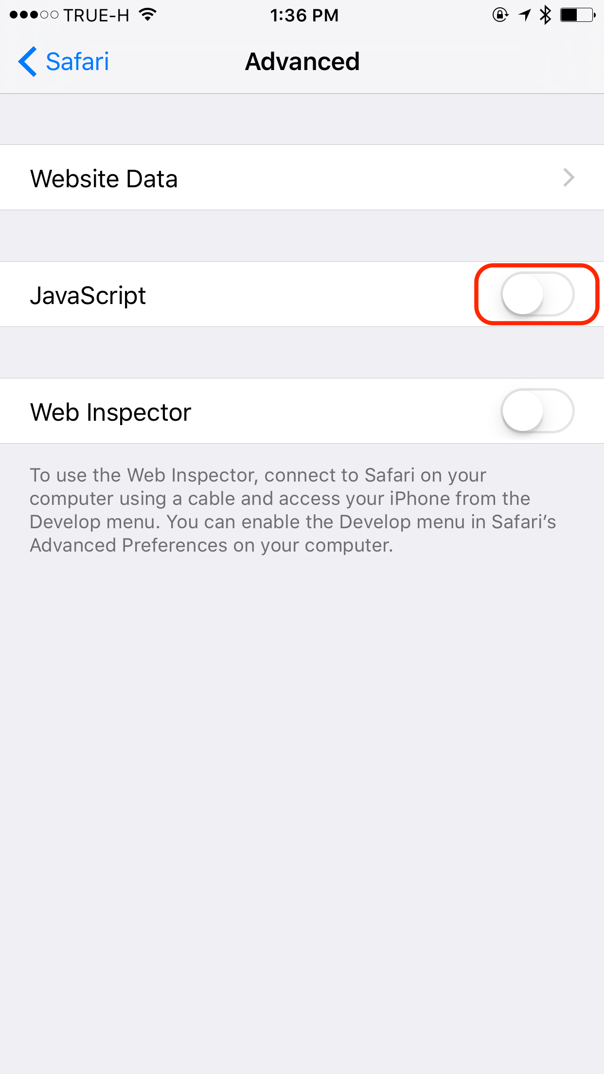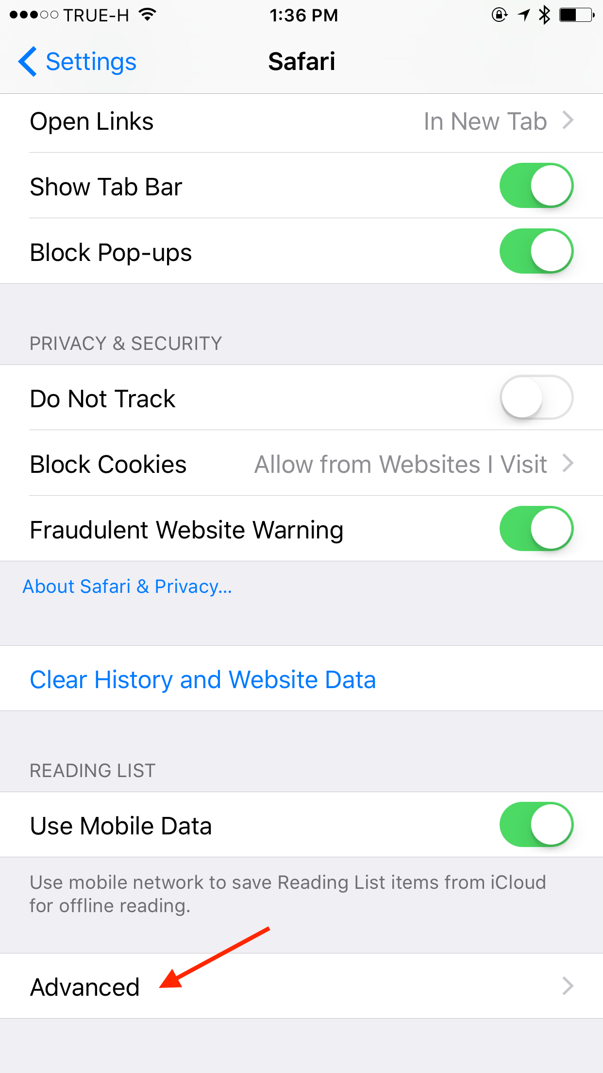 ขั้นแรกไปที่ Settings> Safari> Advanced