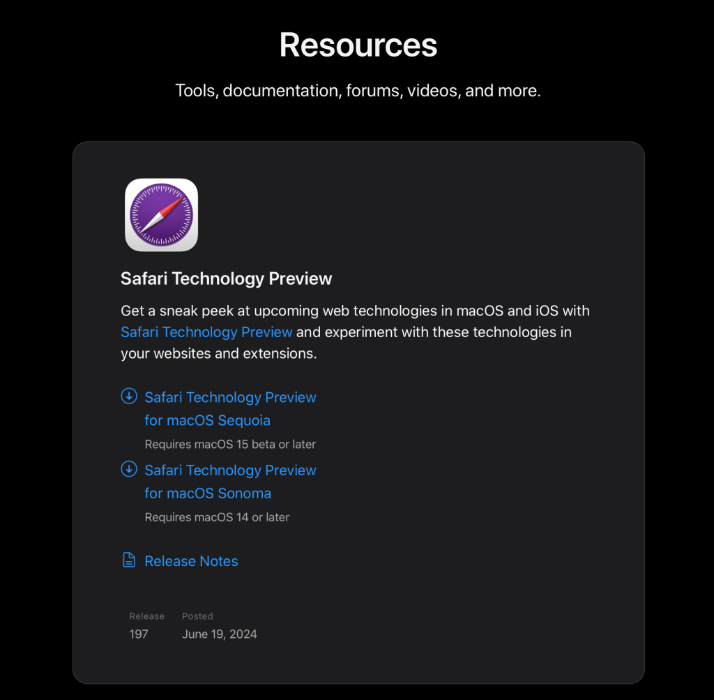 Apple เปิดตัว Safari Technology Preview เวอร์ชัน 197 รองรับ macOS Sequoia