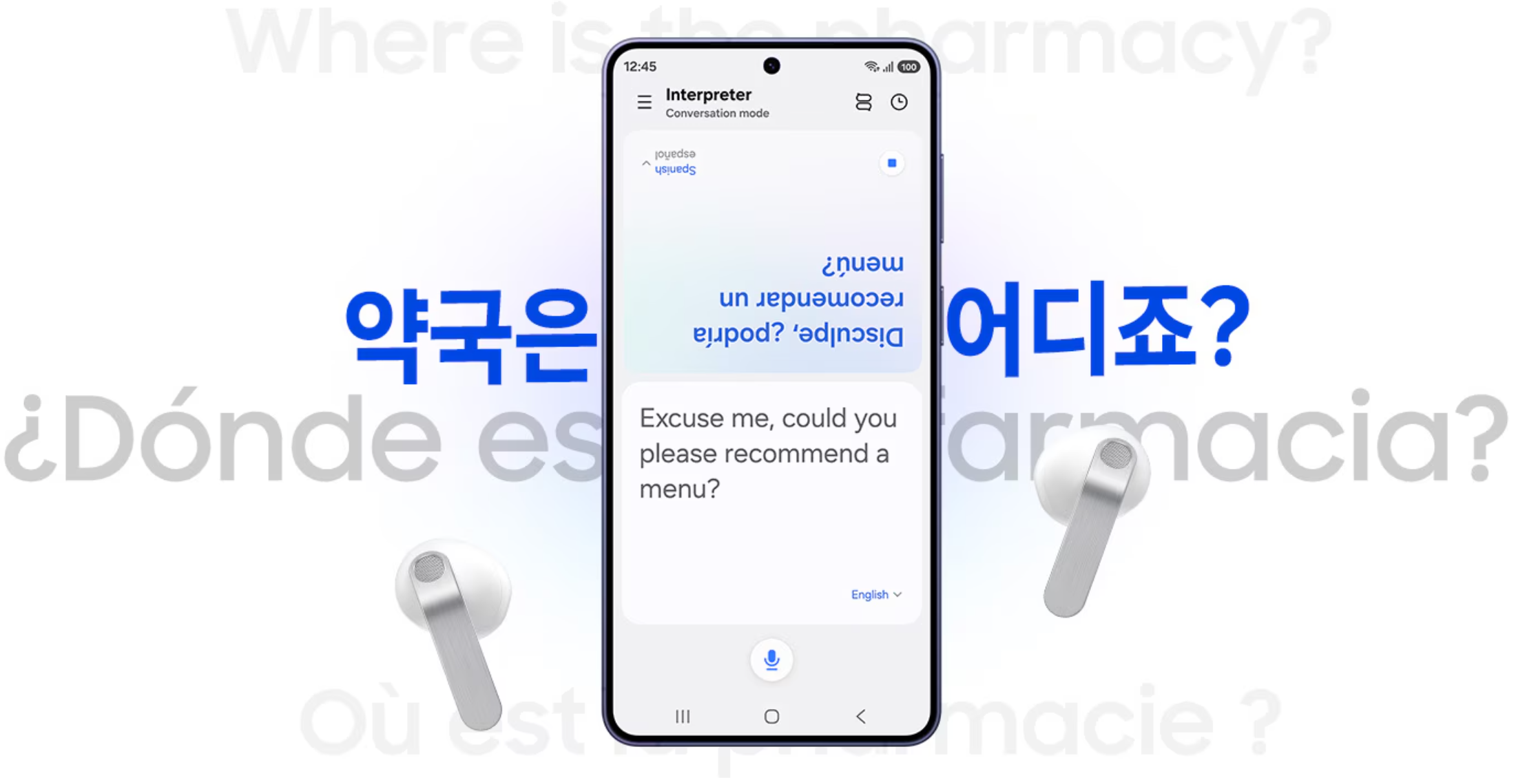 ทลายกำแพงภาษาด้วยนักแปล AI ส่วนตัวในหูของผู้ใช้ Interpreter ที่ขับเคลื่อนโดย Galaxy AI จะอ่านคำแปลให้ฟังผ่าน Galaxy Buds4 Series และแสดงคำแปลให้ผู้ใช้ได้อ่านในสมาร์ตโฟน Galaxy