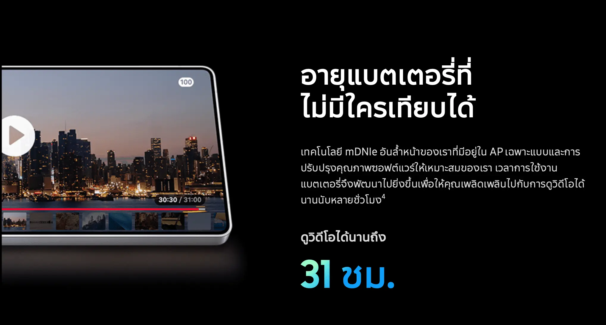 การที่ตัวเเครื่องมีเวลาใช้งานเครื่องนานขึ้นนั้นมาจากเทคโนโลยี mDNIe ล้ำหน้า ที่มีอยู่ใน AP แบบเฉพาะ