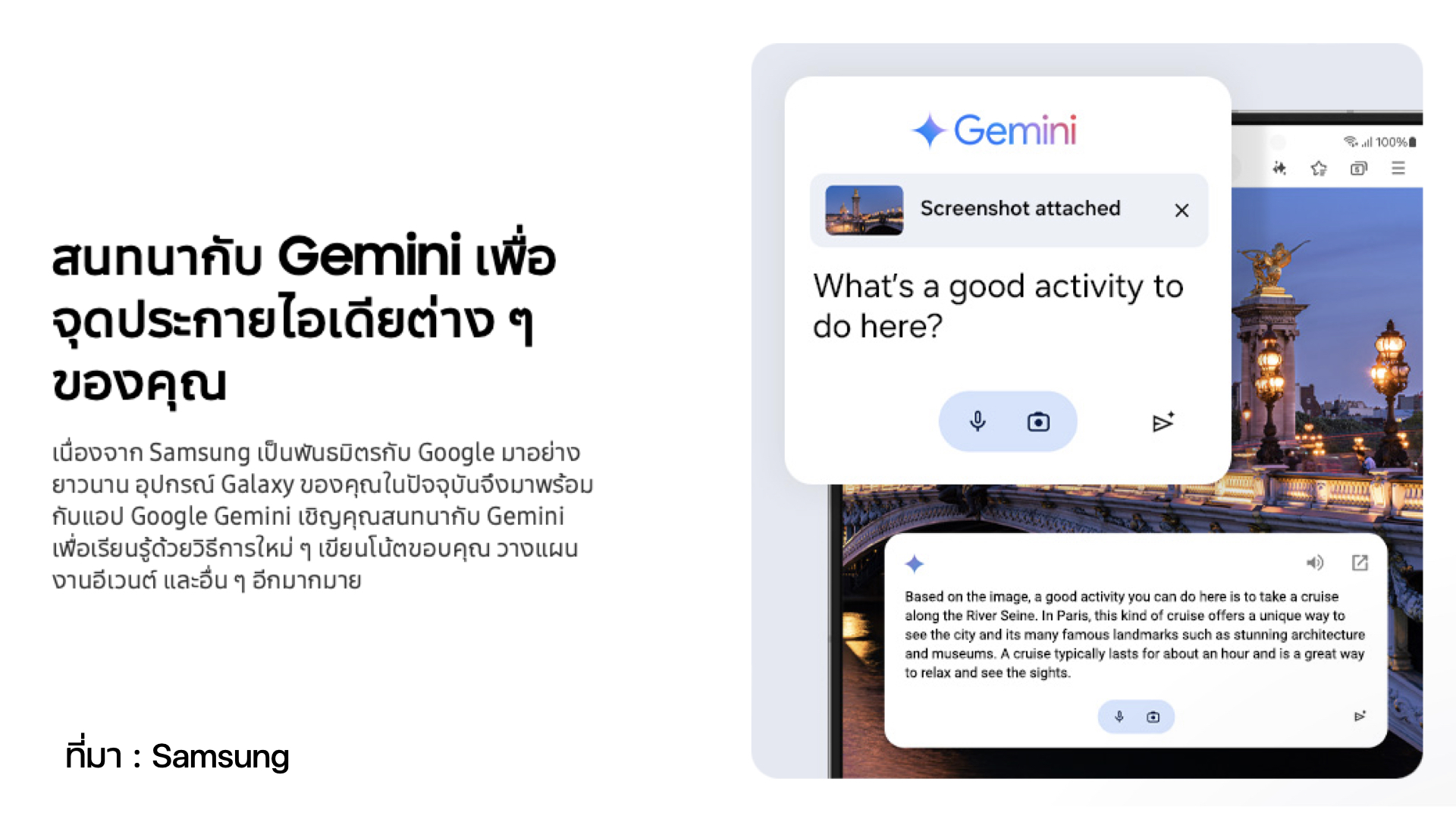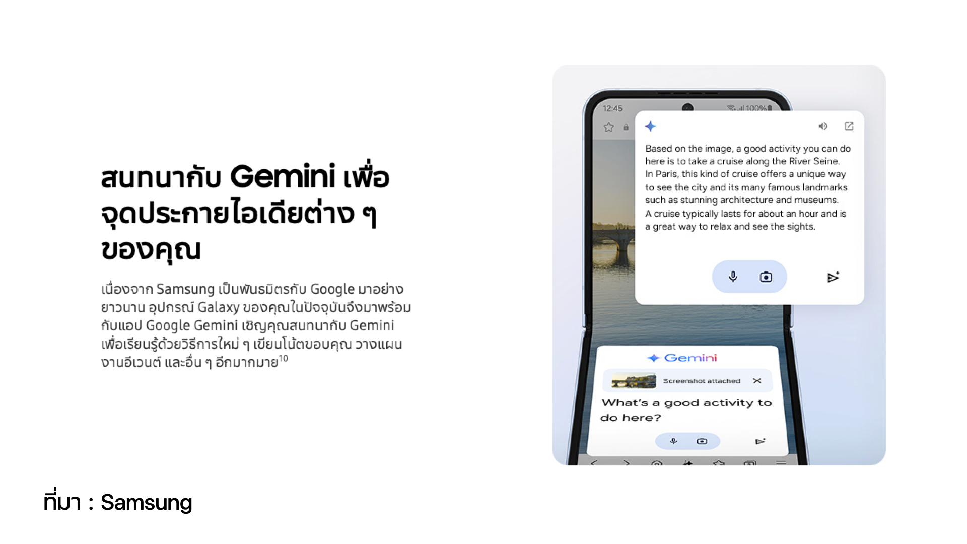 Samsung ได้ประกาศความร่วมมือกับ Google ในการนำ Gemini มาเป็นตัวเลือก AI ใน Galaxy Z Fold6 ด้วย! ใช้งานได้ทั้งการพูดคุยกับ ChatBot, สั่งการทำงาน, วางแผน และอื่น ๆ