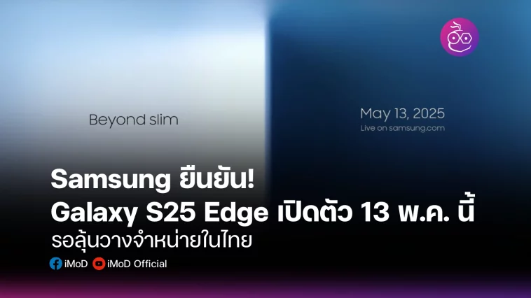 Samsung ยืนยันแล้ว Galaxy S25 Edge จะเปิดตัว 13 พ.ค. นี้ ในช่วงเช้าตามเวลาเกาหลี โดยในส่วนของสเปค ราคาและวันวางจำหน่ายในแต่ละประเทศต้องรอติดตามกันในวันเปิดตัวว่าจะตรงกับข่าวลือก่อนหน้านี้หรือไม่