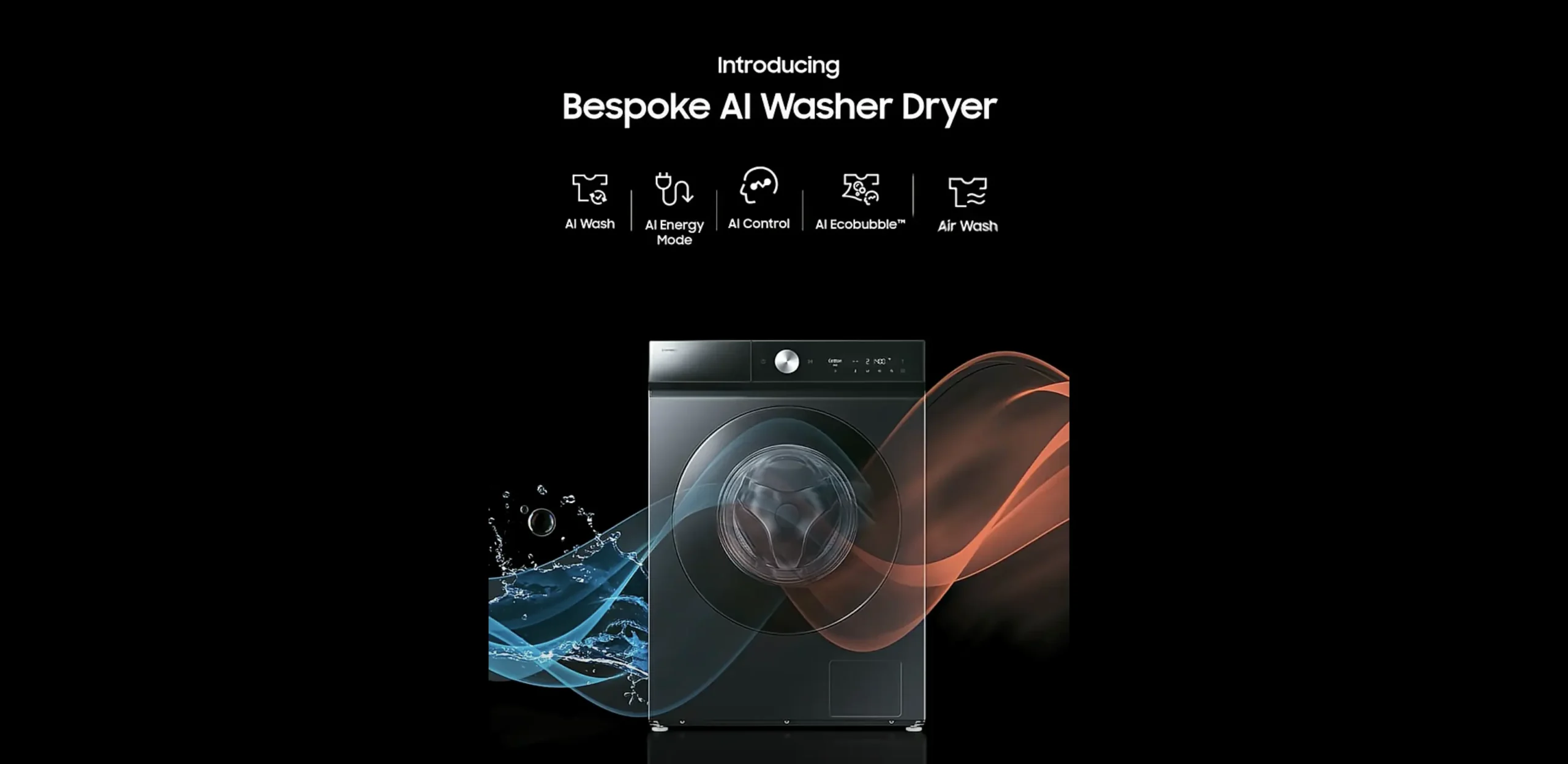 นอกจากนี้ยังมี AI Energy ที่ช่วยลดการใช้ไฟฟ้าลงถึง 70%, SuperSpeed ที่สามารถซักผ้าเต็มถังในเวลาเพียง 39 นาที, AI EcoBubble ที่ช่วยเพิ่มการซักคราบสกปรกได้ถึง 20%, และ AirWash ที่ช่วยสดชื่นผ้าโดยไม่ต้องซัก และ SmartThings Wrinkle Prevent เพื่อช่วยลดรอยยับของเสื้อผ้า