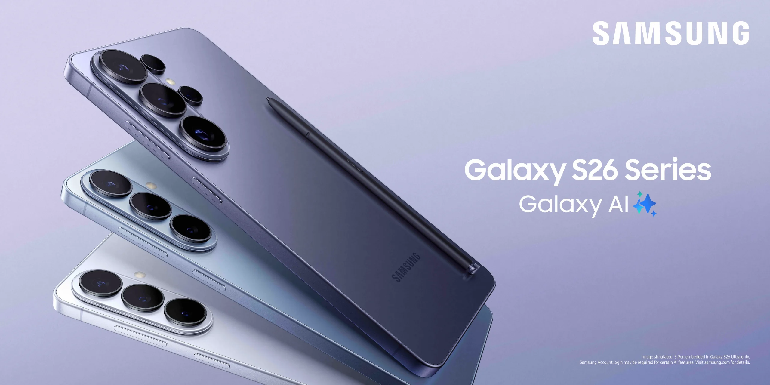 สำหรับ Galaxy S26 Series มีสีให้เลือกได้แก่ Cobalt Violet, White, Black และ Sky Blue และสีพิเศษเฉพาะช่องทางออนไลน์ ได้แก่ Pink Gold และ Silver Shadow โดยราคาของแต่ละรุ่น ได้แก่