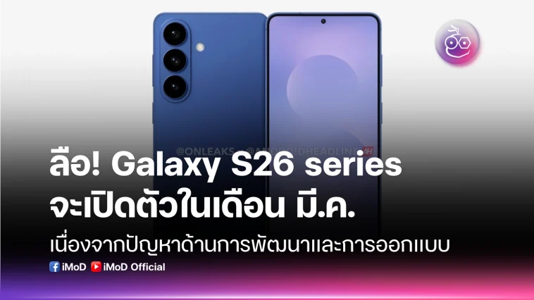 มีรายงานใหม่เผยว่า Samsung Galaxy S26 series จะถูกเลื่อนการเปิดตัวไปเป็นเดือน มี.ค. เนื่องจากปัญหาด้านการพัฒนาและการออกแบบ ทำให้ต้องเลื่อนจากปกติที่จัดงานในเดือน ม.ค.