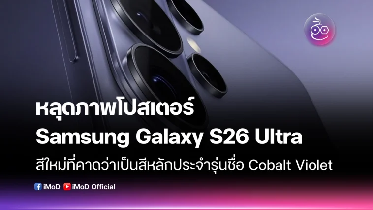 ก่อนงานเปิดตัว Galaxy S26 series ที่จะมีขึ้นในอีก 3 สัปดาห์ข้างหน้า Evan Blass (@evleaks) ได้เปิดเผยโปสเตอร์ทางการของ Galaxy S26 Ultra โดยตัวเครื่องปรากฏในสีใหม่ที่คาดว่าเป็นสีหลักประจำรุ่นชื่อ Cobalt Violet การจัดมุมกล้องของโปสเตอร์ทำให้ตัวเครื่องดูมีโทนสีม่วง พร้อมเผยให้เห็นด้านหลังและด้านขวาของตัวเครื่อง