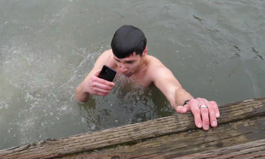 สุดท้ายผู้ทดสอบได้นำ Samsung Galaxy S8+ ไปทดสอบโดยการเปิดอัดวิดีโอ กระโดดลงน้ำ และดำน้ำผลปรากฏว่าตัวเครื่องก็สามารถใช้งานได้ปกติ