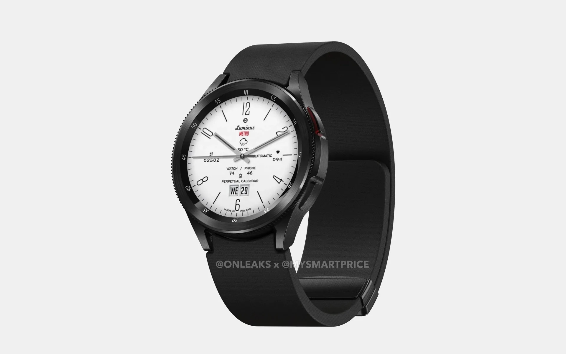 จากภาพ renders เผยให้เราได้เห็นดีไซน์ของ Galaxy Watch 6 รุ่น Classic ว่าจะมีลักษณะคล้ายกันกับ Galaxy Watch 4 Classic แรนเดอร์ออกมาให้โทนสีดำล้วนทั้งตัวเรือนและสายนาฬิกา สิ่งที่เห็นเป็นเอกลักษณ์ก็คือหน้าปัดทรงกลมแบบโลหะ และ สายรัดข้อมือที่เชื่อมปลายสายด้วยแม่เหล็ก