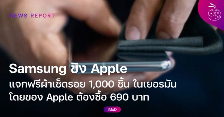 สื่อรายงานว่า Samsung แจกฟรีผ้าเช็ดรอยให้ลูกค้าในเยอรมัน 1,000 ชิ้น ซึ่ง Apple เปิดขายผ้าเช็ดรอยในราคา 690 บาท