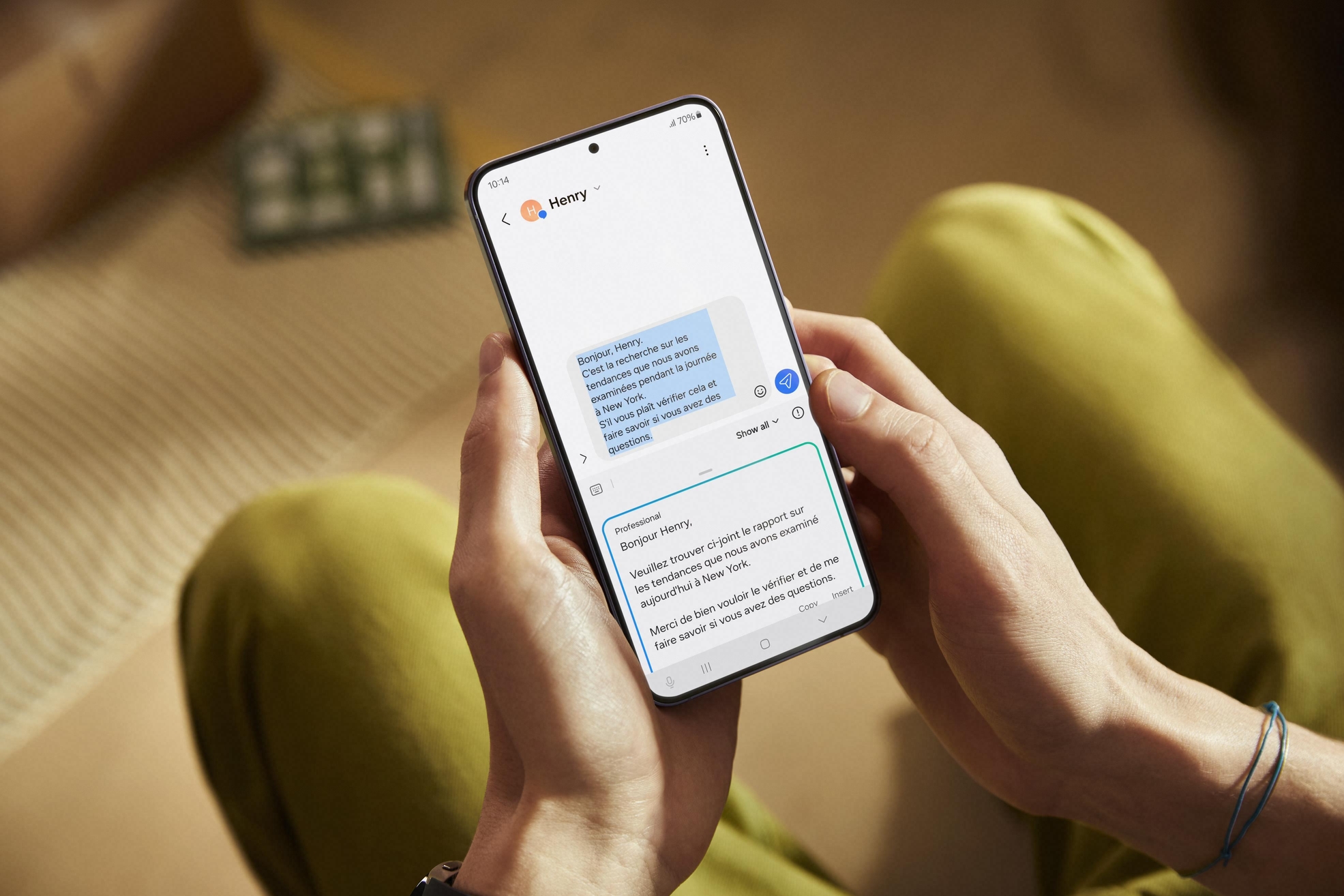 สามารถแปลภาษาและช่วยปรับน้ำเสียงให้การสนทนาเข้ากับบริบท เช่น การส่งข้อความที่สุภาพให้กับเพื่อนร่วมงาน หรือข้อความกระชับโดนใจสำหรับโพสต์ลงโซเชียล AI ในซัมซุงคีย์บอร์ดสามารถแปลข้อความได้ 13 ภาษา 4 แบบเรียลไทม์