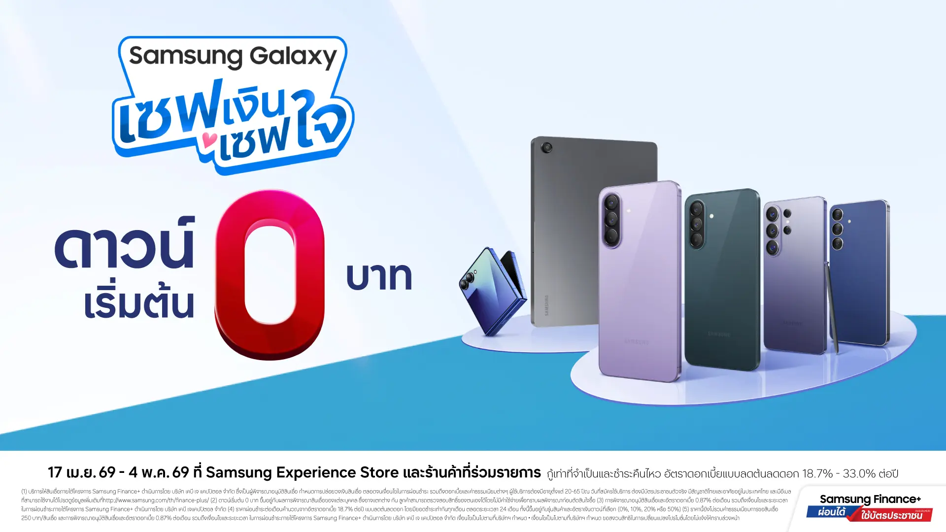 เริ่ม 17 เมษายน – 4 พฤษภาคม 2569 ที่ Samsung Experience Store และร้านค้าที่ร่วมรายการทั่วประเทศ ดูรายละเอียดโปรโมชันเพิ่มเติมได้ที่นี่ (เงื่อนไขและนโยบายการผ่อนชำระเป็นไปตามที่บริษัทกำหนด)
