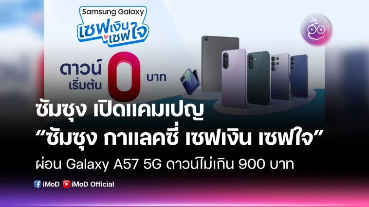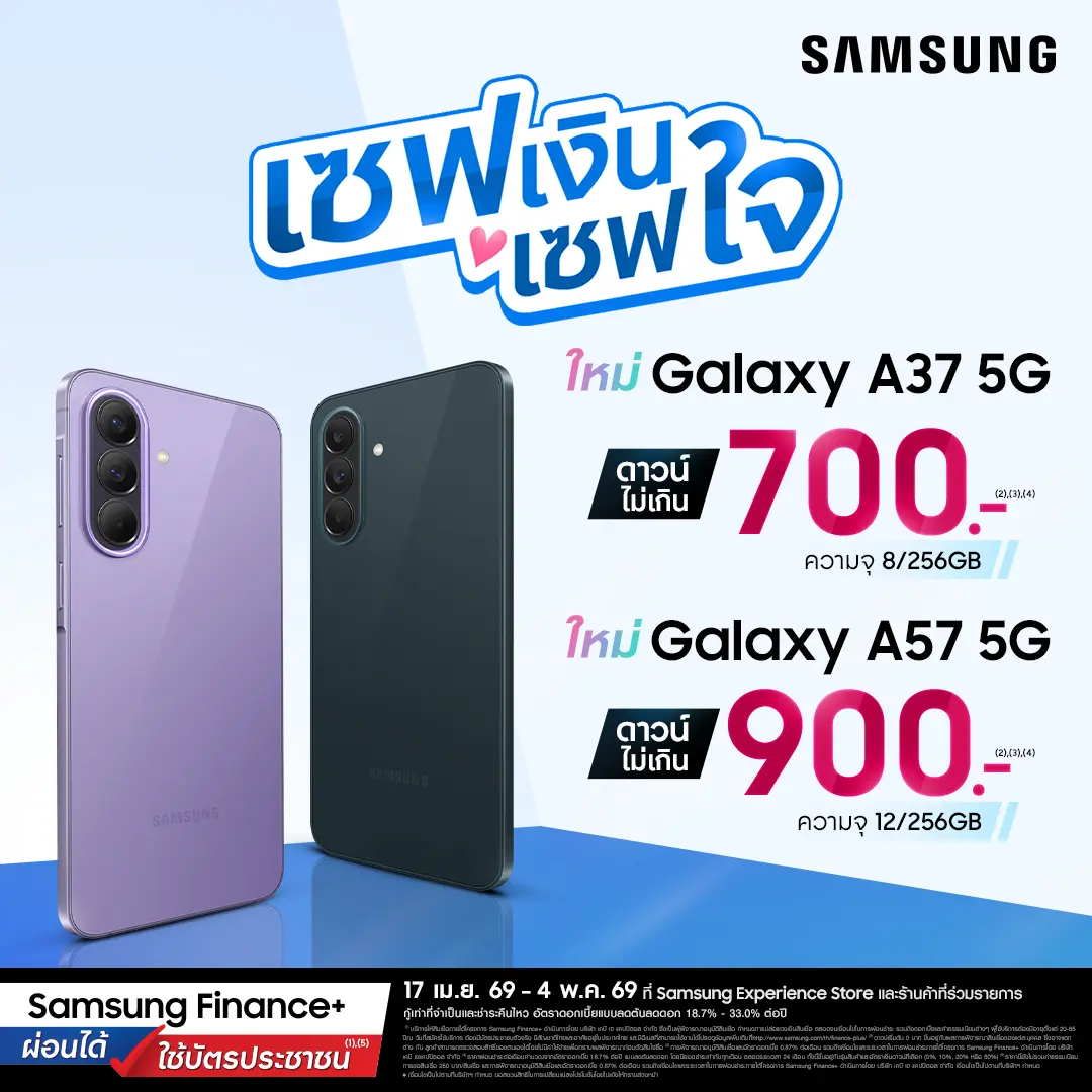 ซัมซุง เปิดแคมเปญ “ซัมซุง กาแลคซี่ เซฟเงิน เซฟใจ” ดาวน์เริ่มต้น 0 บาท ผ่อน Galaxy A57 5G ดาวน์ไม่เกิน 900 บาท พร้อมโปรฯ รุ่นอื่น ๆ อีกเพียบ!