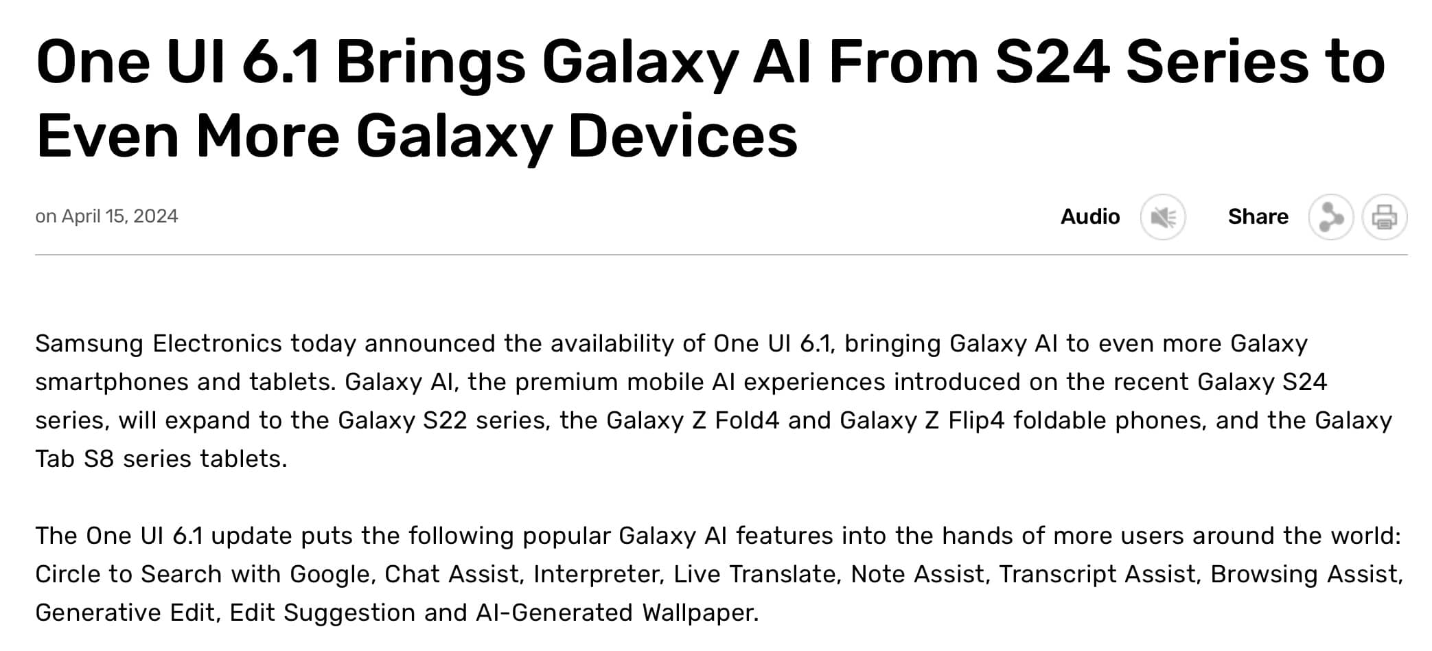 ในรายงานเผยว่า จะมีบางฟีเจอร์ของ Galaxy AI ที่รองรับ Galaxy S22 และอุปกรณ์รุ่นเก่า ได้แก่