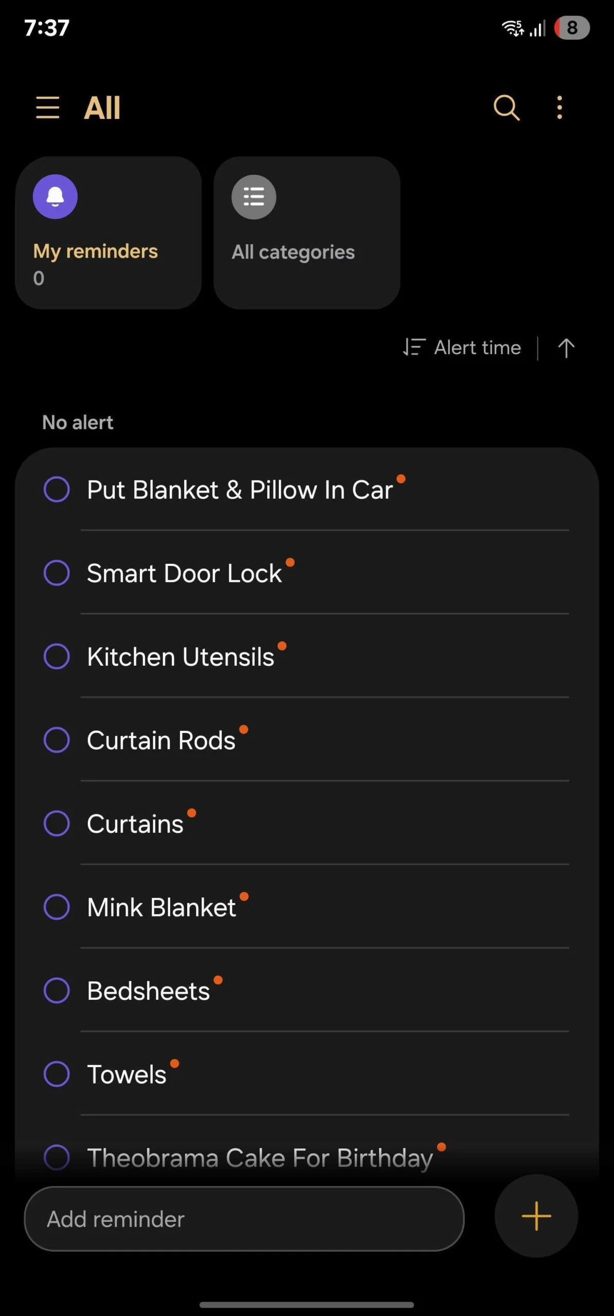 นอกจากนี้ยังมีการเปลี่ยนแปลงเล็กน้อยใน ช่องข้อความด้านล่างสำหรับเพิ่มการเตือนความจำ โดยไอคอนเครื่องหมายบวก (+) ถูกย้ายมาไว้ ด้านในช่องข้อความ (ฝั่งซ้าย) แทนที่จะเป็นปุ่มแยกอยู่ด้านขวาเหมือนก่อนปุ่ม Sort By ก็ ถูกถอดออกไป ด้วยเช่นกัน