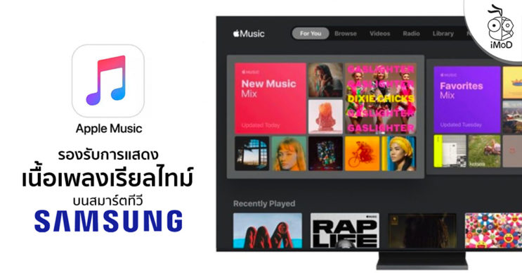 Apple และ Samsung ได้ร่วมมือกันเปิดตัวแอปฟังเพลง Apple Music บนสมาร์ตทีวี Samsung เมื่อเดือนเมษายนที่ผ่านมา ล่าสุดก็ได้รองรับการแสดงผลเนื้อเพลงแบบเรียลไทม์แล้ว
