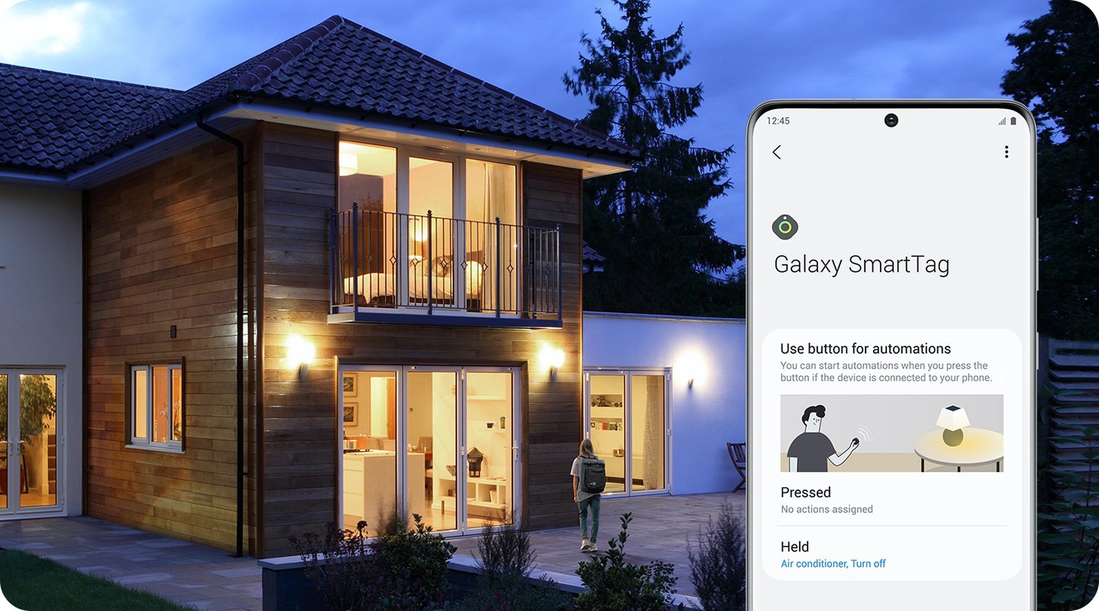 Galaxy SmartTags ยังรองรับการใช้งานร่วมกับอุปกรณ์ Smart Home ด้วย, โดย Galaxy SmartTags สามารถใช้ควบคุมอุปกรณ์ IoT เช่น หากเราติด Galaxy SmartTags กับกุญแจแล้วถ้าถึงบ้าน สามารถกดปุ่มที่ตัวอุปกรณ์เพื่อสั่งเปิดไฟได้ เป็นต้น