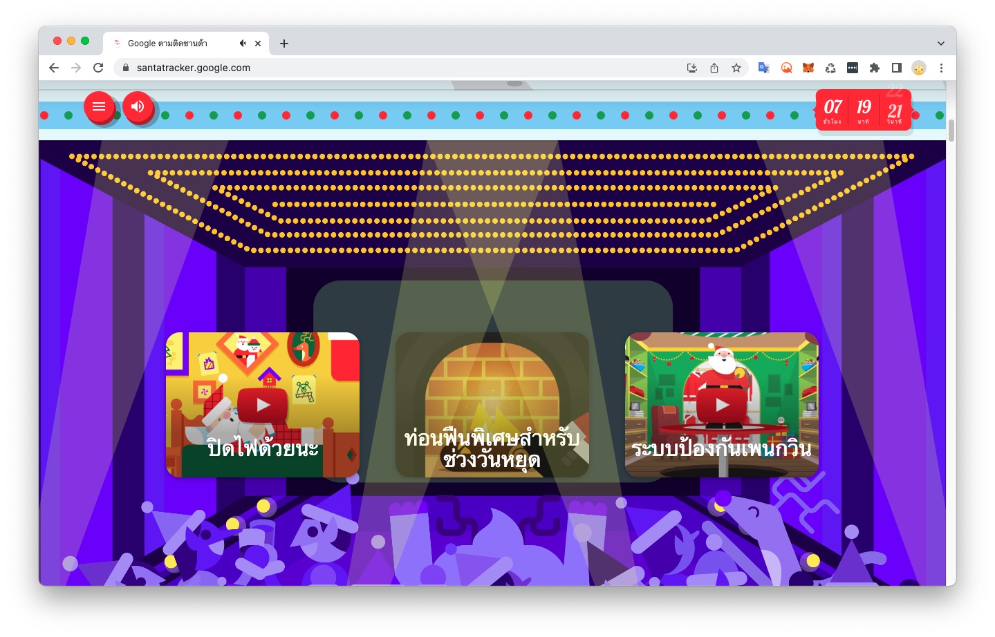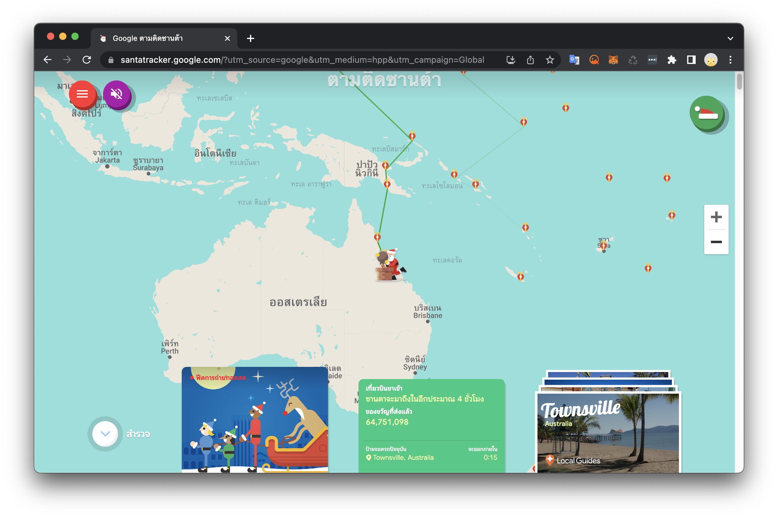 Google ได้เปิดให้ผู้ใช้ติดตามซานต้าผ่านเว็บไซต์ https://santatracker.google.com/ เพื่อให้เราได้ดูว่าตอนนี้ซานต้ากำลังเดินทางไปยังประเทศใดบ้าง