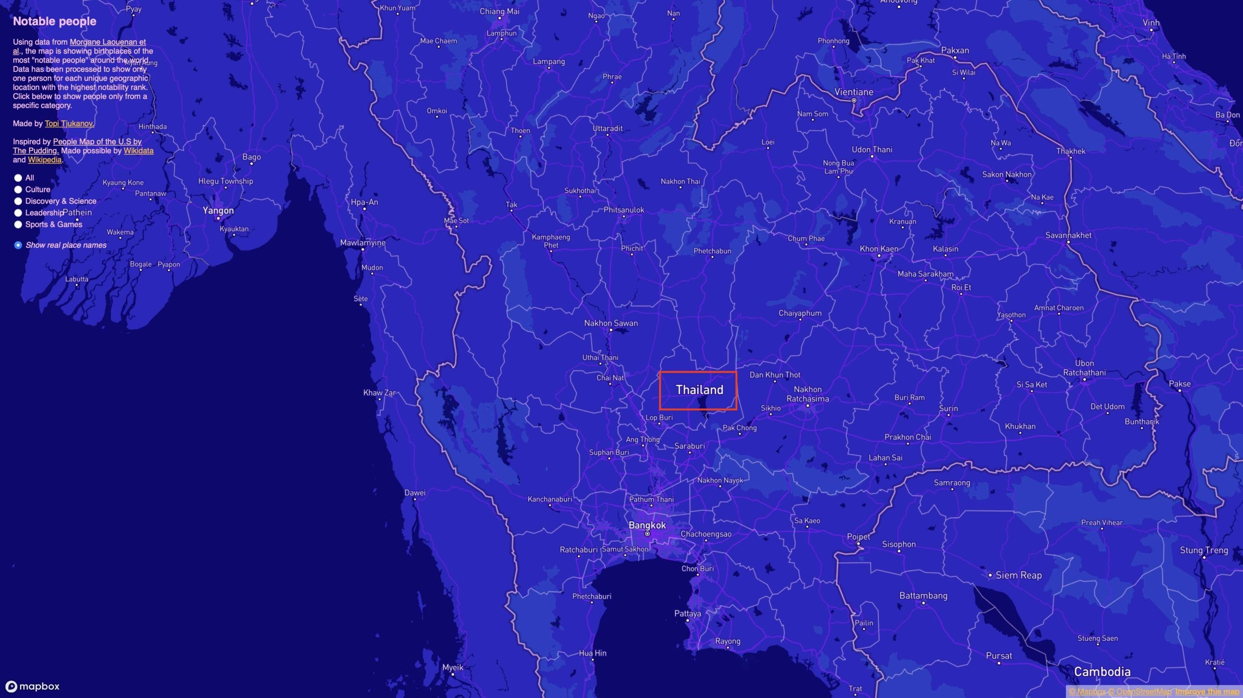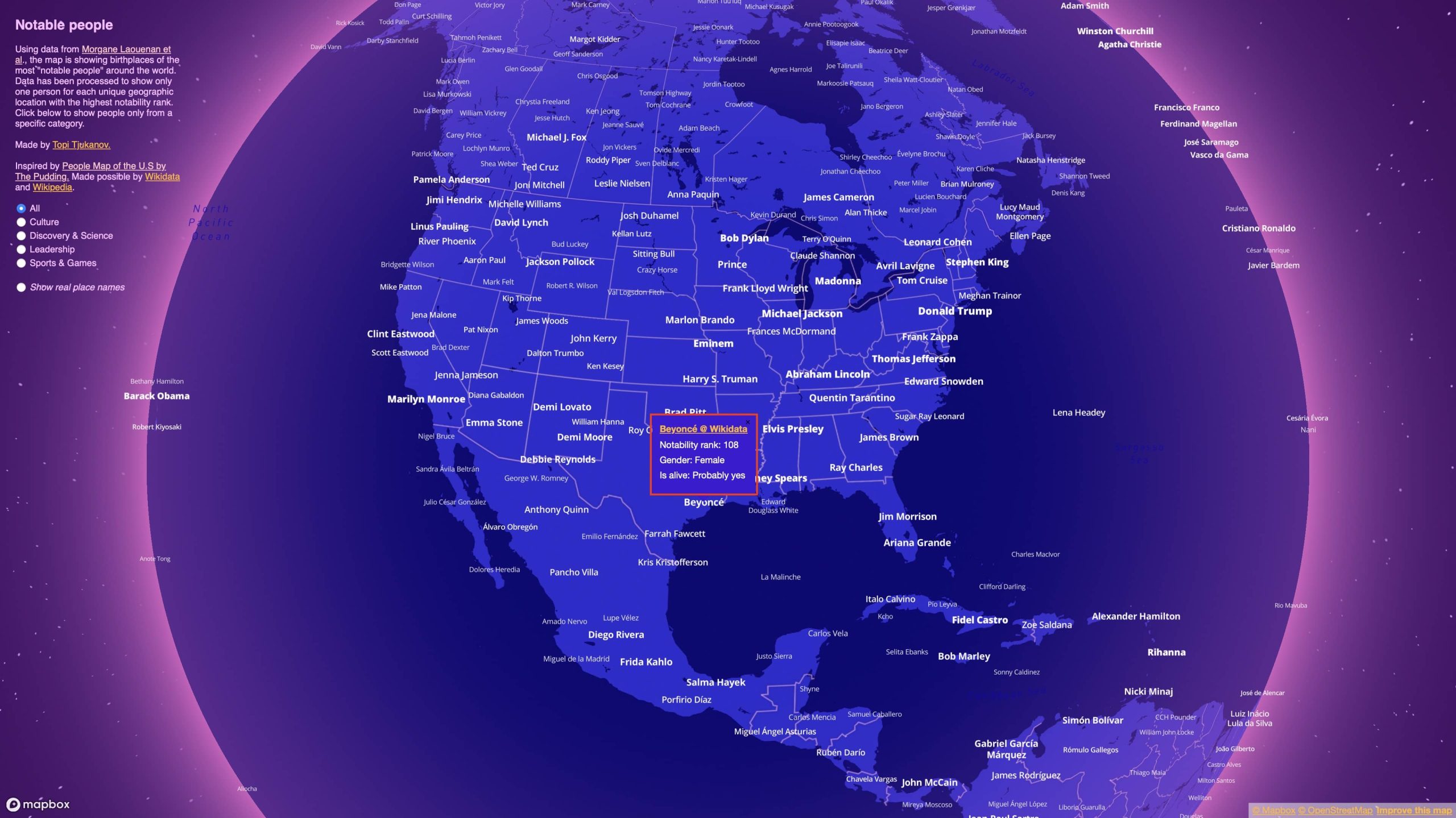 เราสามารถซูมดูรายชื่อคนดังในประเทศหรือทวีปต่าง ๆ ทั่วโลกได้เลย