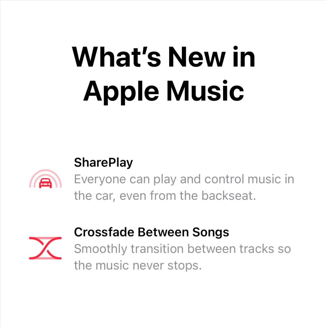 ผู้ใช้ iPhone ที่อยู่ในรถยนต์จะมีคำแนะนำให้เข้าร่วมโดยอัตโนมัติ โดยผู้ฟังจะสามารถควบคุมเพลงได้จากอุปกรณ์ของตัวเอง ถึงแม้จะไม่ได้เป็นสมาชิก Apple Music ก็ตาม!