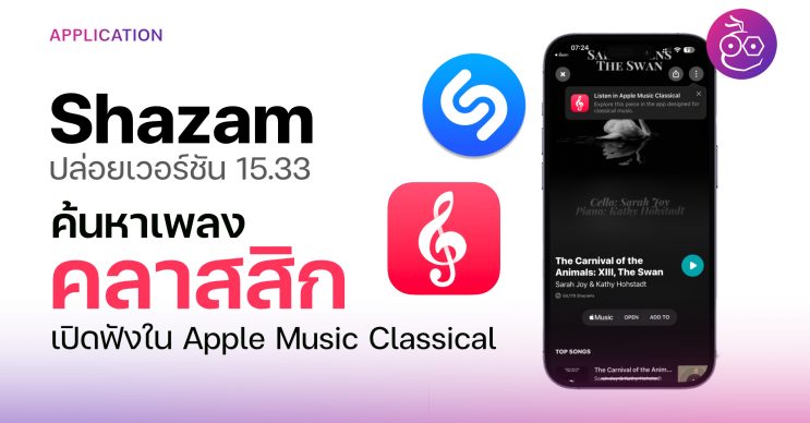 Shazam ปล่อยเวอร์ชัน 15.33 ค้นหาเพลงคลาสสิกเเละเปิดฟังในเเอป Apple Music Classical ได้!