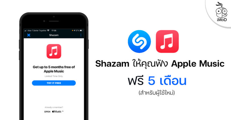 ผู้ใช้ใหม่ที่มีแอป Shazam และ Apple Music อยู่ในเครื่อง สามารถสมัครรับบริการ Apple Music ฟรี 5 เดือน ยกเลิกได้ทุกเมื่อ (หลังจากครบ 5 เดือน จ่ายเดือนละ 129 บาท) โดยสมัครได้ถึงวันที่ 17 มกราคม 2021