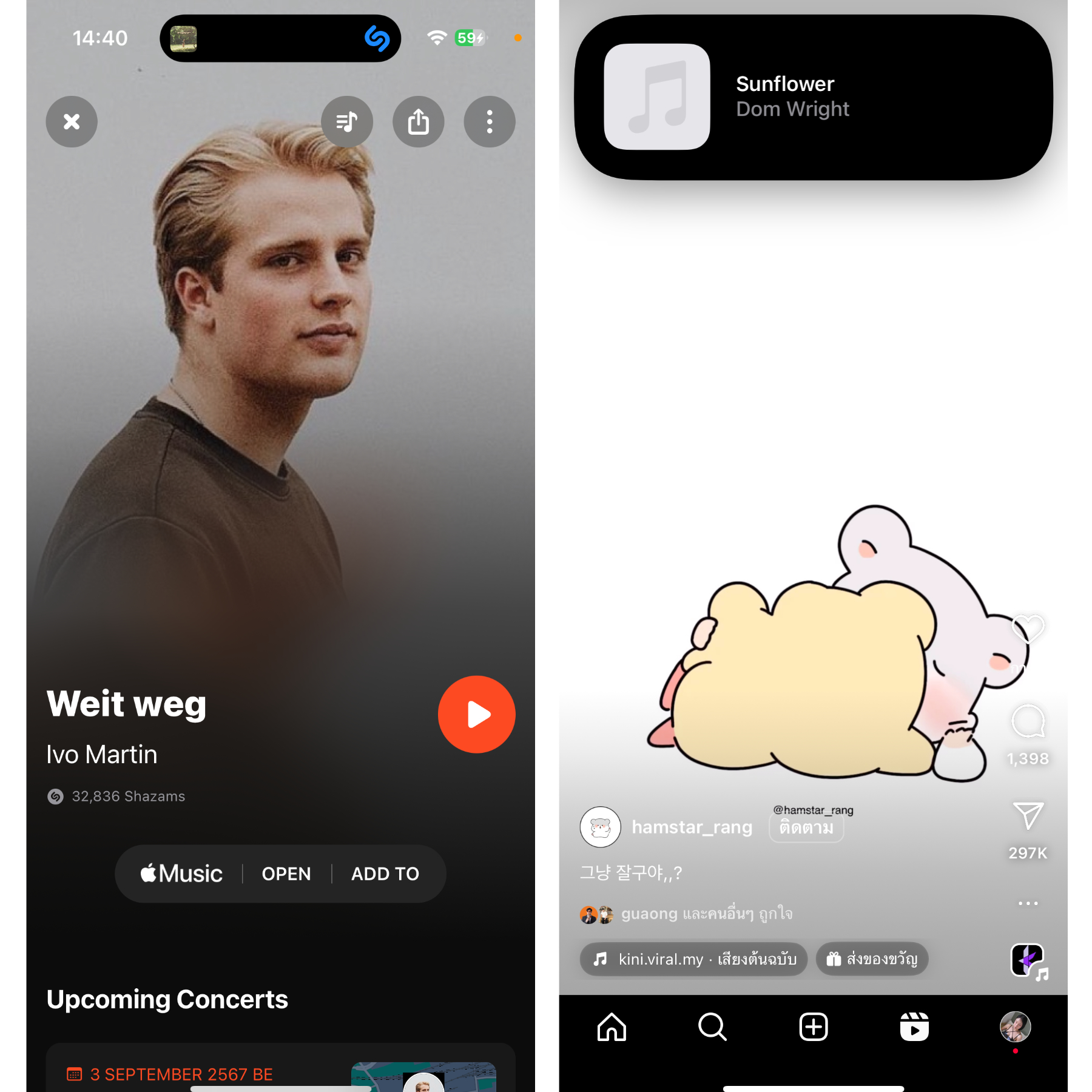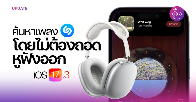 แอป Shazam บน iPhone และ iPad ใน iOS 17.3 และ iPadOS 17.3 สามารถค้นหาเพลงที่ฟังอยู่ขณะนั้นโดยไม่ต้องถอดหูฟังออกมา เพราะตัว Shazam สามารถฟังเสียงจากคอนเท้นต์ไปพร้อม ๆ กับเราได้แล้ว