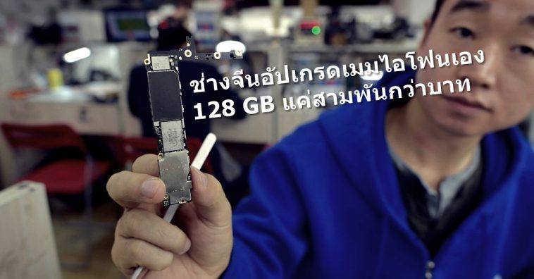 โคตรพังค์! คงไม่มีคำไหนเหมาะไปกว่านี้แล้ว เมื่อร้านซ่อมมือถือในจีนได้รับเปลี่ยนหน่วยความจำ iPhone จาก 16GB ไปเป็น 128GB ด้วยราคาเพียง 580 หยวน (ประมาณ 3,250 บาท) ซึ่งผู้สื่อข่าวท้องถิ่นได้เข้าสัมภาษณ์ช่างคนหนึ่งในเมือง Chongqing Municipality เมื่อวันที่ 1 พฤศจิกายนที่ผ่านมา เกี่ยวกับกระบวนการวิธีทำ