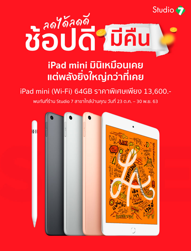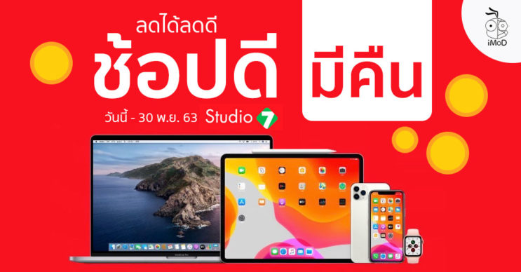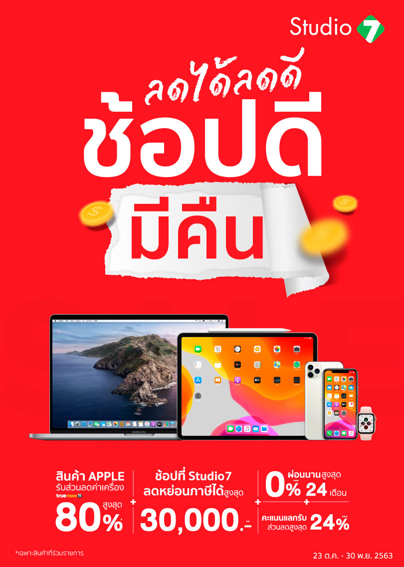 รายละเอียดเพิ่มเติม > https://www.studio7thailand.com/promotions/shop-dee-mee-kuen-apple-product/