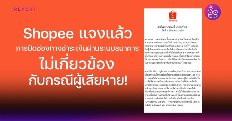 ก่อนหน้านี้ทาง Shopee ได้ประกาศปิดช่องทางชำระเงินผ่านธนาคาร ที่มีผลตั้งแต่ 6 ธ.ค. 65 เป็นต้นไป ซึ่งอยู่ในช่วงเดียวกันกับที่มีผู้เสียหายถูกหักเงินด้วย, ทาง Shopee จึงได้ออกแถลงการณ์ข้อเท็จจริงเรื่องนี้ให้ทราบกัน