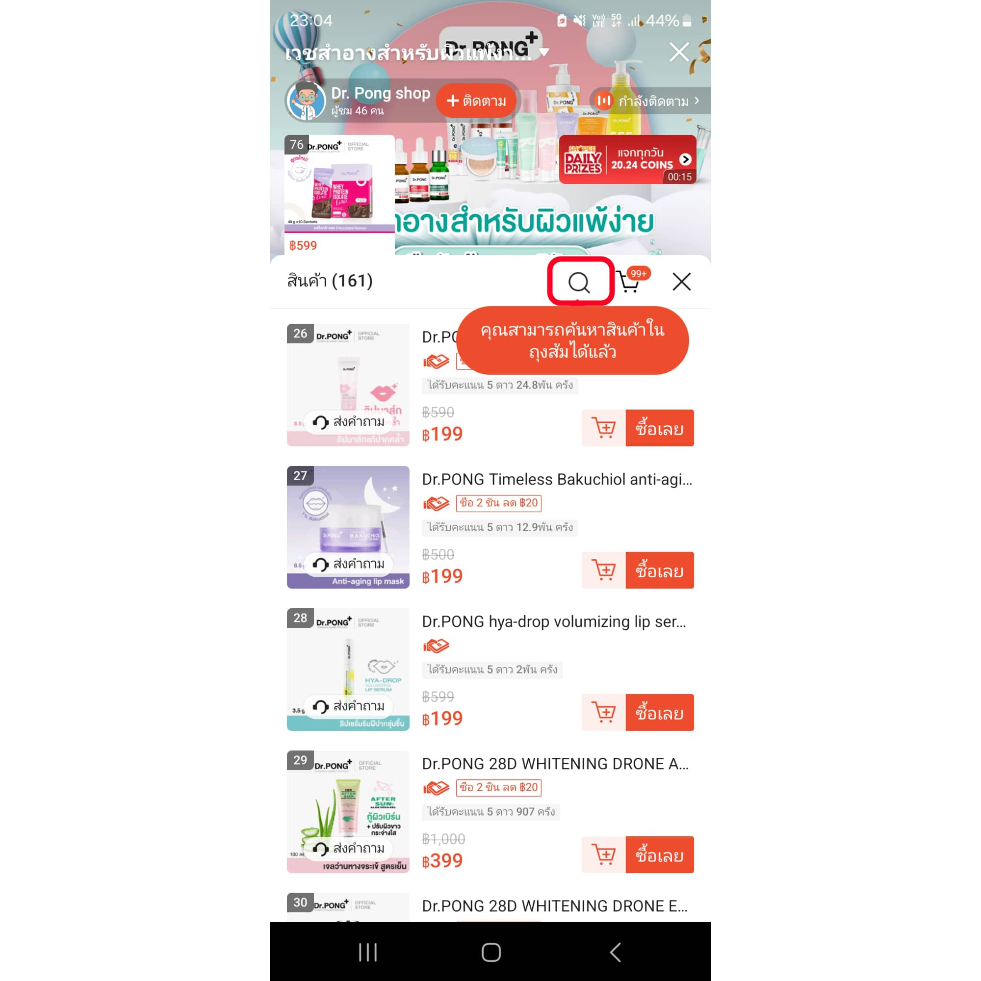 ปกติเวลาเราดูไลฟ์สดแล้วซื้อของ เราจะต้องเลื่อนหาสินค้านั้น ๆ เพื่อซื้อหรือแอดเพิ่มเข้าตะกร้า แต่ล่าสุดทาง Shopee ก็ได้อัปเดตเพิ่มตัวค้นหามา ให้เราสามารถค้นหาสินค้าได้แบบง่าย ๆ โดยที่ไม่ต้องเลื่อนหาสินค้าที่ต้องการ ถือว่าสะดวกขึ้นมาก!