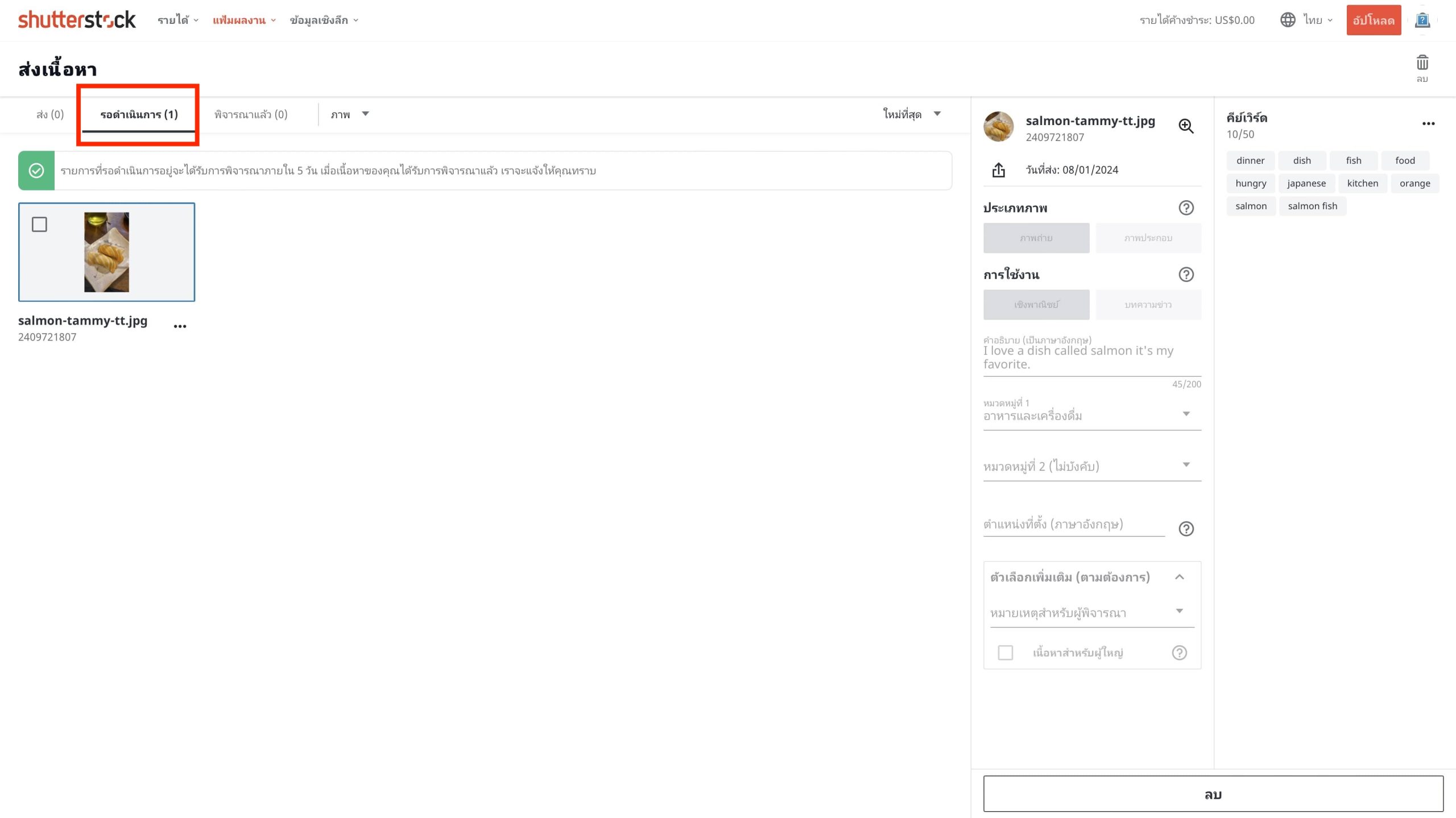 จากนั้นภาพของเราจะต้องรอดำเนินการ ซึ่งต้องรอไปประมาณ 5 วันนะ ถึงจะลงขายได้!