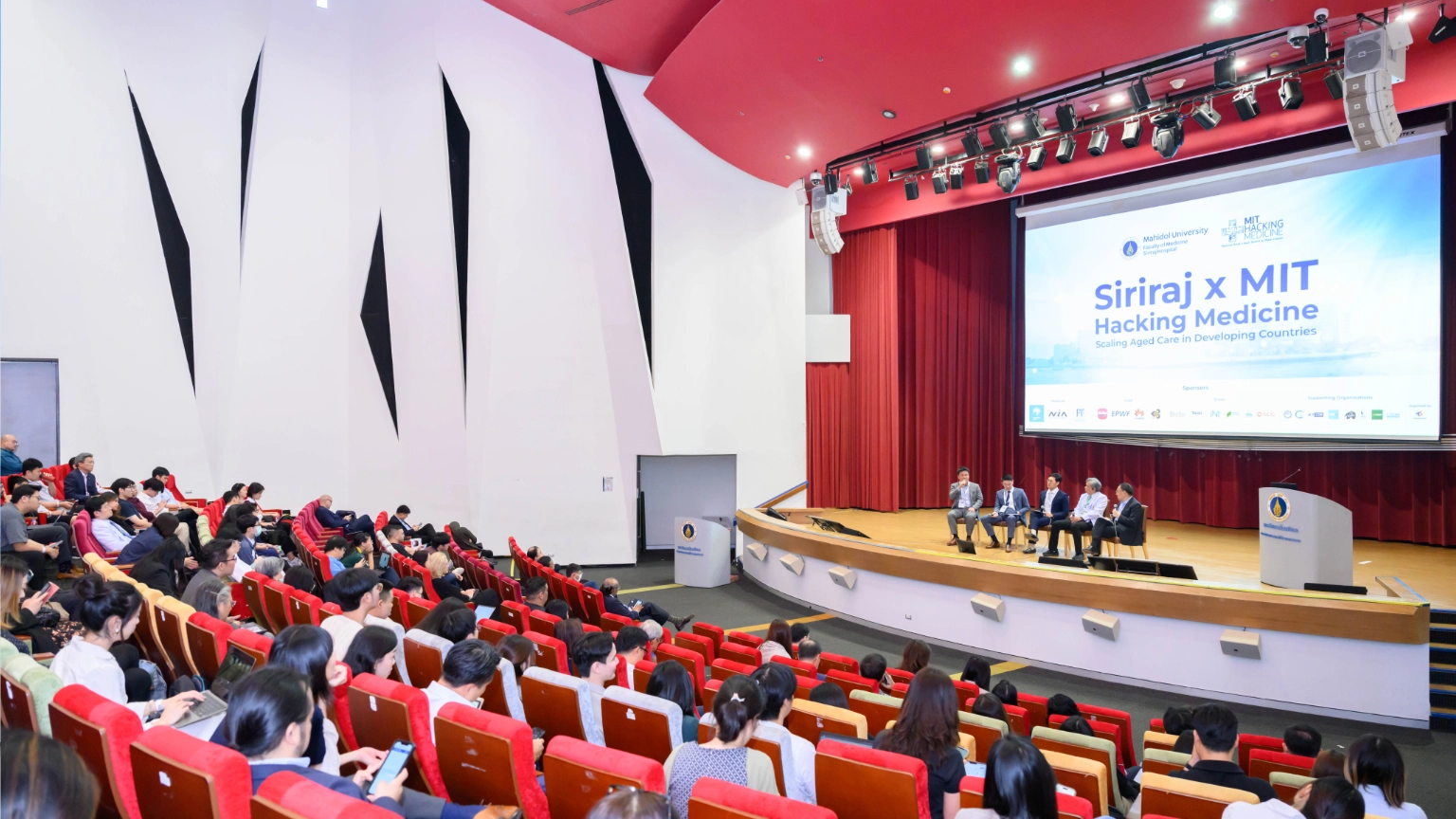 วันที่ 29 ตุลาคม 2024 ณ อาคารศรีสวรินทิรา โรงพยาบาลศิริราช คณะแพทยศาสตร์ศิริราชพยาบาล มหาวิทยาลัยมหิดล ร่วมกับ สถาบันเทคโนโลยีแมสซาชูเซตส์ (MIT) ประสบความสำเร็จในการจัดประชุมวิชาการ Siriraj x MIT Hacking Medicine ภายใต้หัวข้อ“Scaling Aged Care in Developing Countries” (การขยายขอบเขตการดูแลผู้สูงอายุในประเทศกำลังพัฒนา)