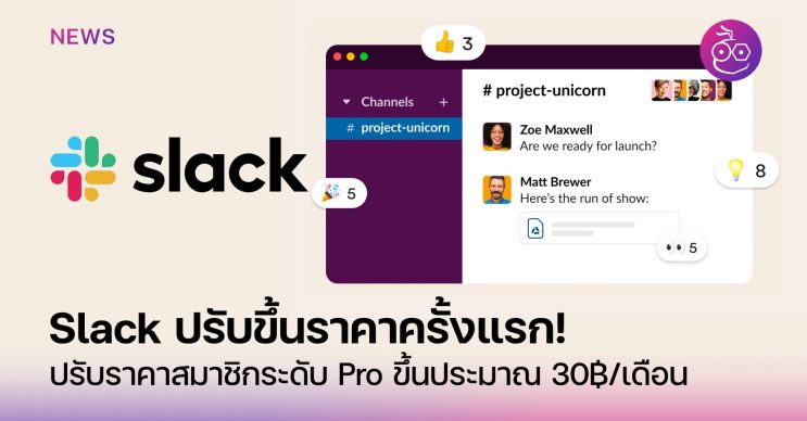 ผู้ให้บริการ Slack กำลังจะปรับขึ้นราคาแผนสมาชิกระดับ Pro โดยปรับราคาขึ้นประมาณ 30 บาทต่อเดือน สมาชิกที่ใช้งานฟรีมีการเปลี่ยยนการบันทึกการสนทนาจาก 10,000 ข้อความล่าสุด เป็นการบันทึก 90 วันล่าสุด