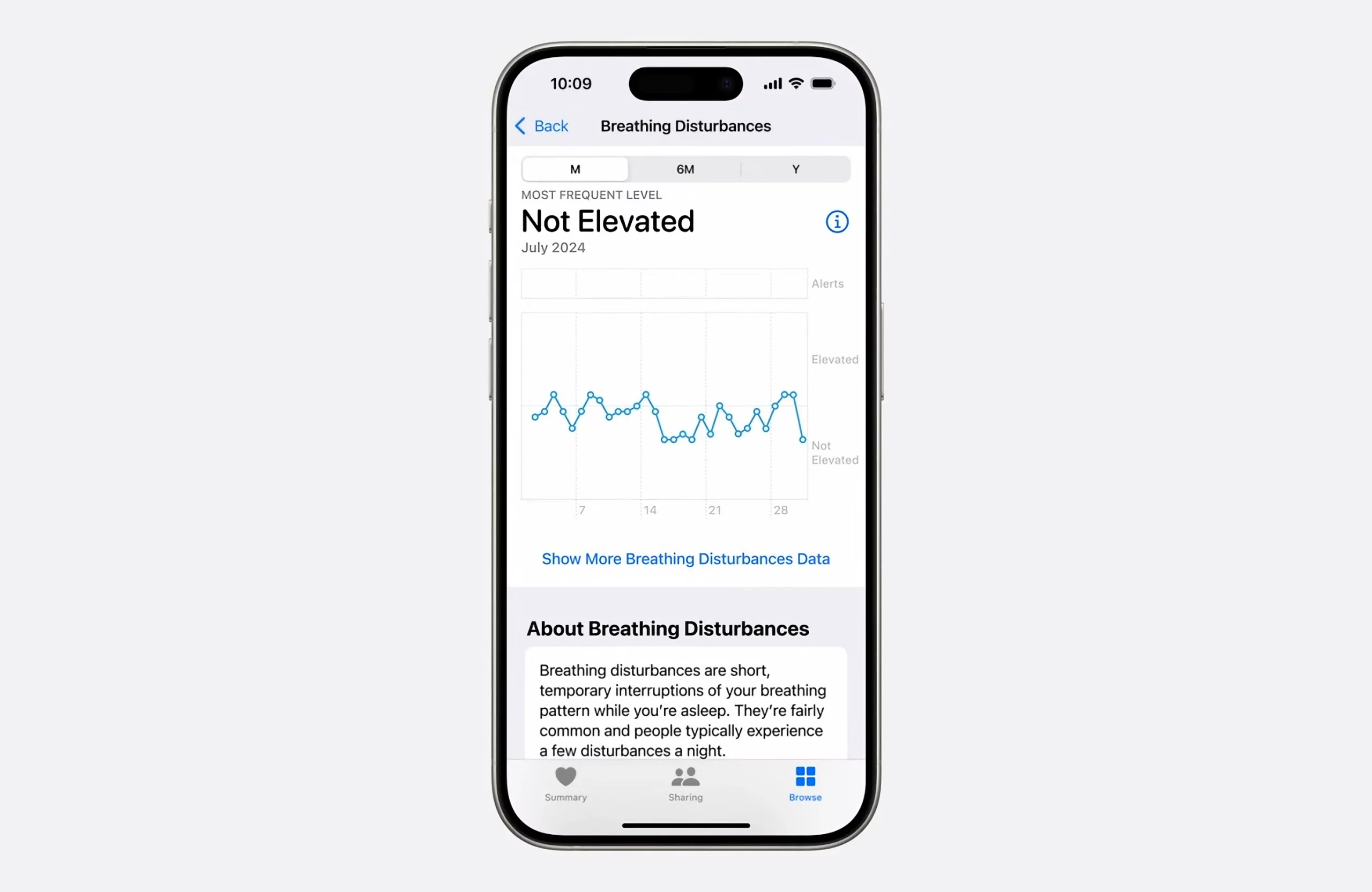 ในขณะที่ Apple Watch รวบรวมข้อมูลการตรวจจับภาวะหยุดหายใจขณะหลับใน 30 วันนั้น ผู้ใช้สามารถดูภาพรวมของการหายใจที่ผิดปกติใจตอนกลางคืนได้ในแอปสุขภาพ เพื่อประเมินการนอนหลับพักผ่อนของตนเอง ซึ่งบางครั้งรูปแบบการหายใจที่ผิดปกตินั้นอาจเกิดจากสิ่งกระตุ้นอื่น ๆ เช่น แอลกอฮอล์ ยา และท่าทางการนอน ผู้ใช้อาจจะต้องสังเกตและปรับพฤติกรรมของตนเองให้ดียิ่งขึ้น