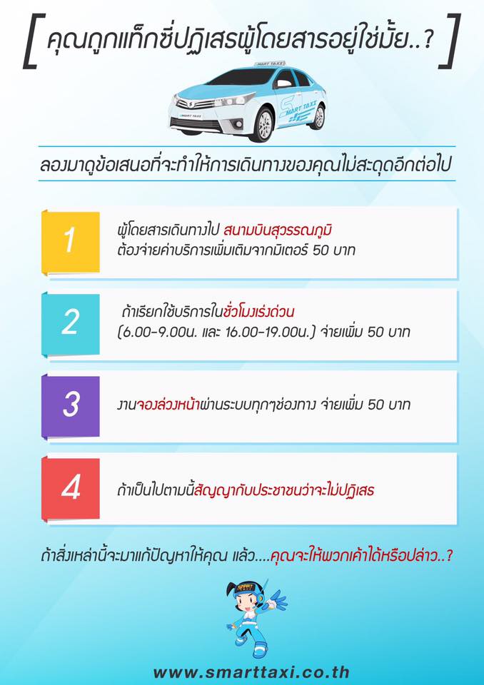 อีกหนึ่งปัญหาที่กระทบไม่แพ้จราจรในบ้านเรา ก็คือการที่ TAXI เลือกผู้โดยสารและสถานที่จะไป ซึ่งหากว่ากันตามโครงสร้างค่าโดยสารแล้วการวิ่งระยะสั้น ๆ หรือวิ่งไกล ๆ แบบรถไม่ติด ดูเหมือนจะทำเงินได้มากกว่าการจอดรถติดอยู่กลางถนนมากกว่า และล่าสุดทาง ประธานเครือข่ายสหกรณ์แท็กซี่ในเขตกรุงเทพฯ ออกมาสนับสนุนแนวคิดของ Smart TAXI ซึ่งจัดทำโดยคนไทย เพื่อแข่งกับ Grab และ Uber โดยตรง