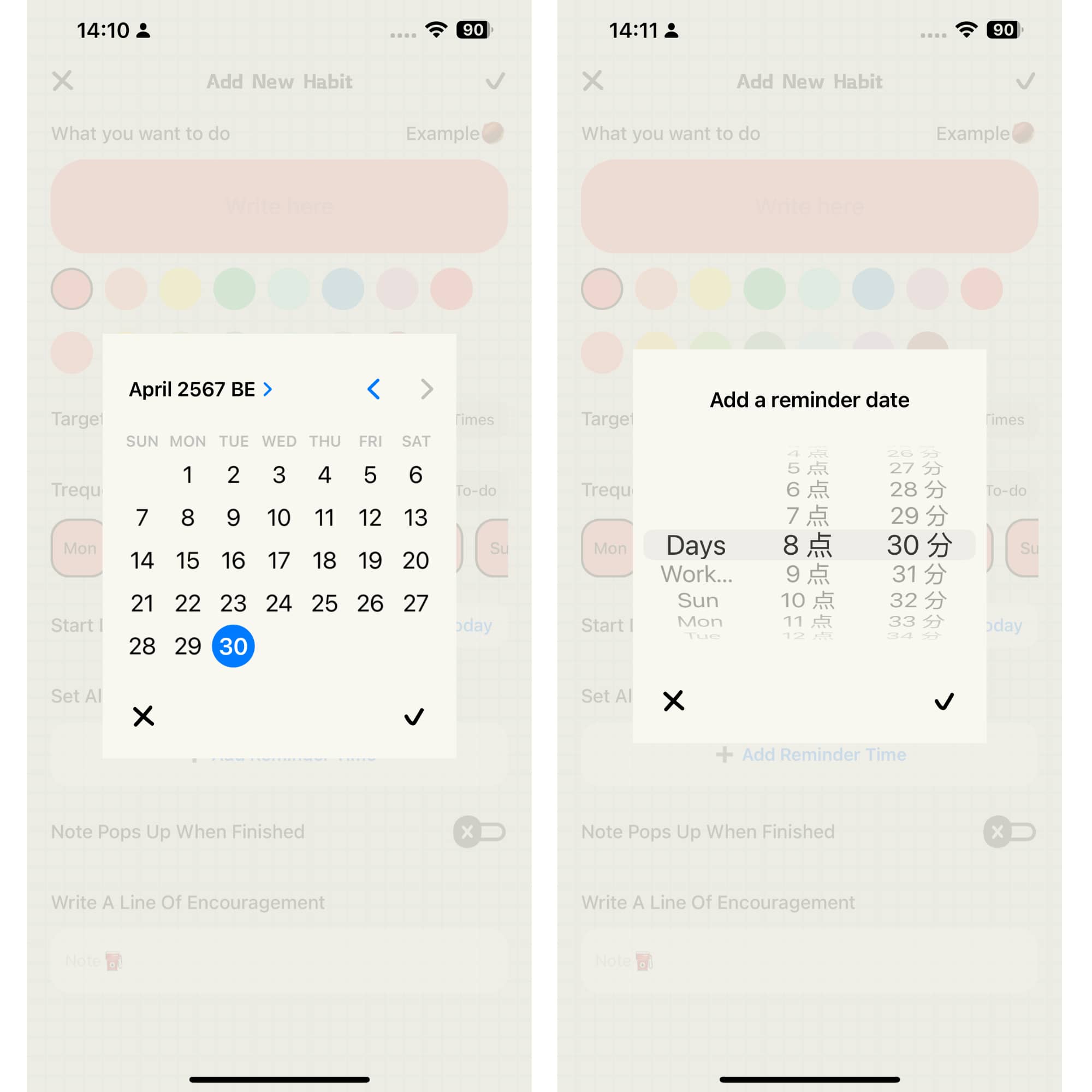 และยังสามารถเลือกความถี่ในการทำ To Do List ได้ไม่ว่าจะเป็นอาทิตย์ เดือน และอื่น ๆ นอกจากนี้ยังกำหนดวันในการเริ่มทำ To Do List ที่ต้องการได้ สะดวกมาก ๆ!