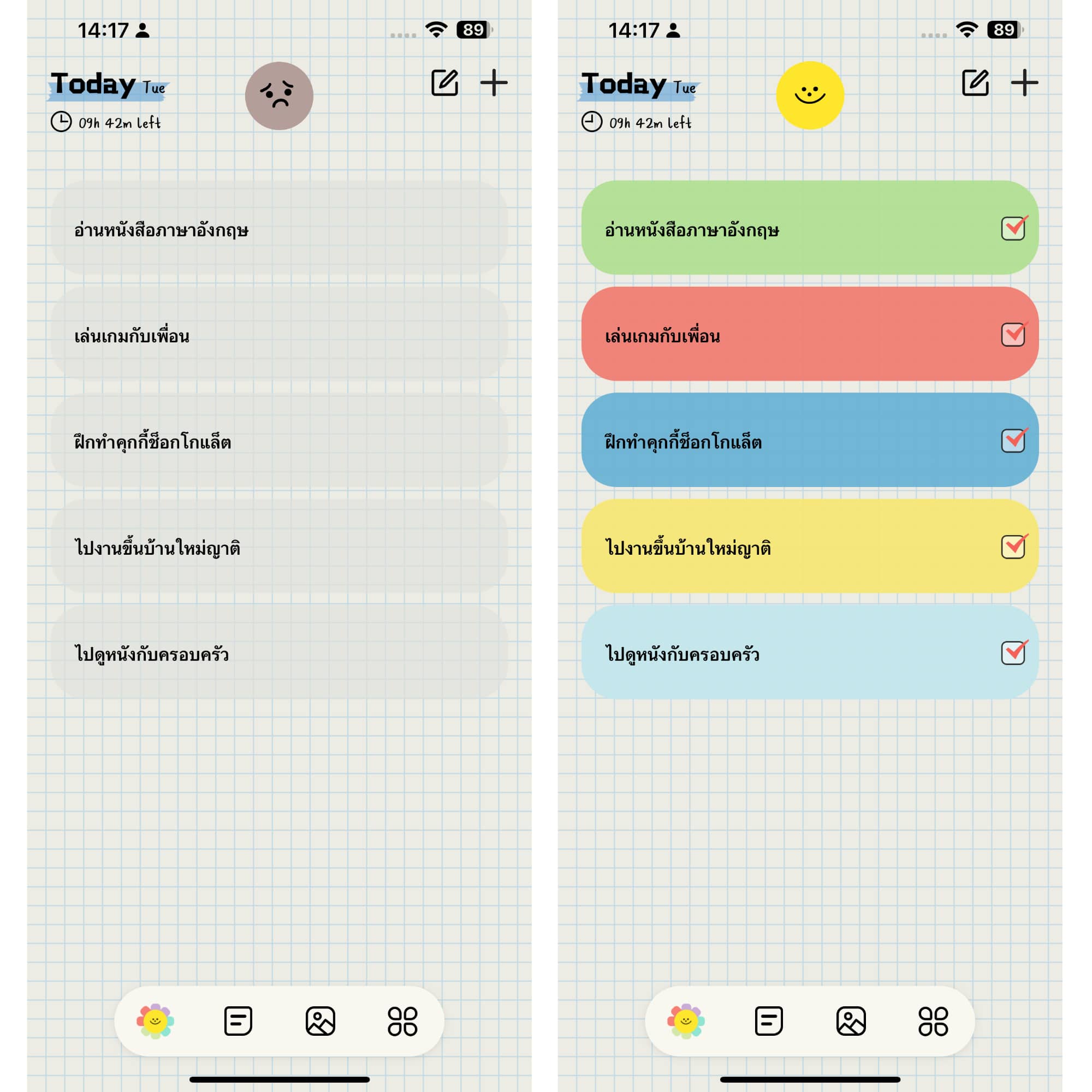 จากนั้นให้เราเขียน To Do List ที่ต้องทำได้เลย ภายในแอปจะมีให้เราเลือกกรอบ To Do List หลายสีมาก ๆ