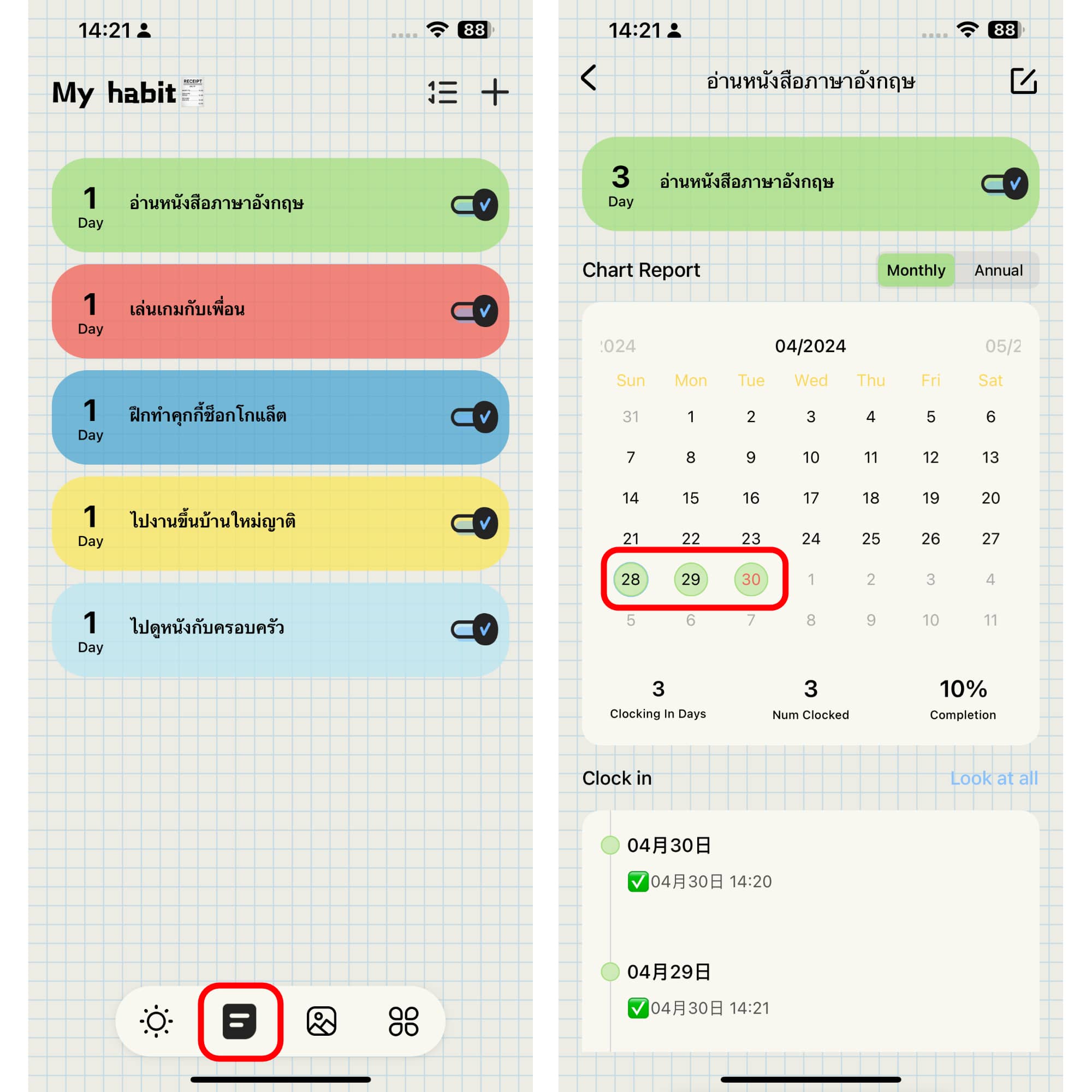 นอกจากนี้ถ้าเรามาที่แท็บ My Habit เราก็จะสามารถตั้งวันที่ในการทำ To Do List นั้น ๆ ได้ เช่น ทีมงานจะอ่านหนังสือเป็นเวลา 3 วัน ตั้งแต่วันที่ 28-30