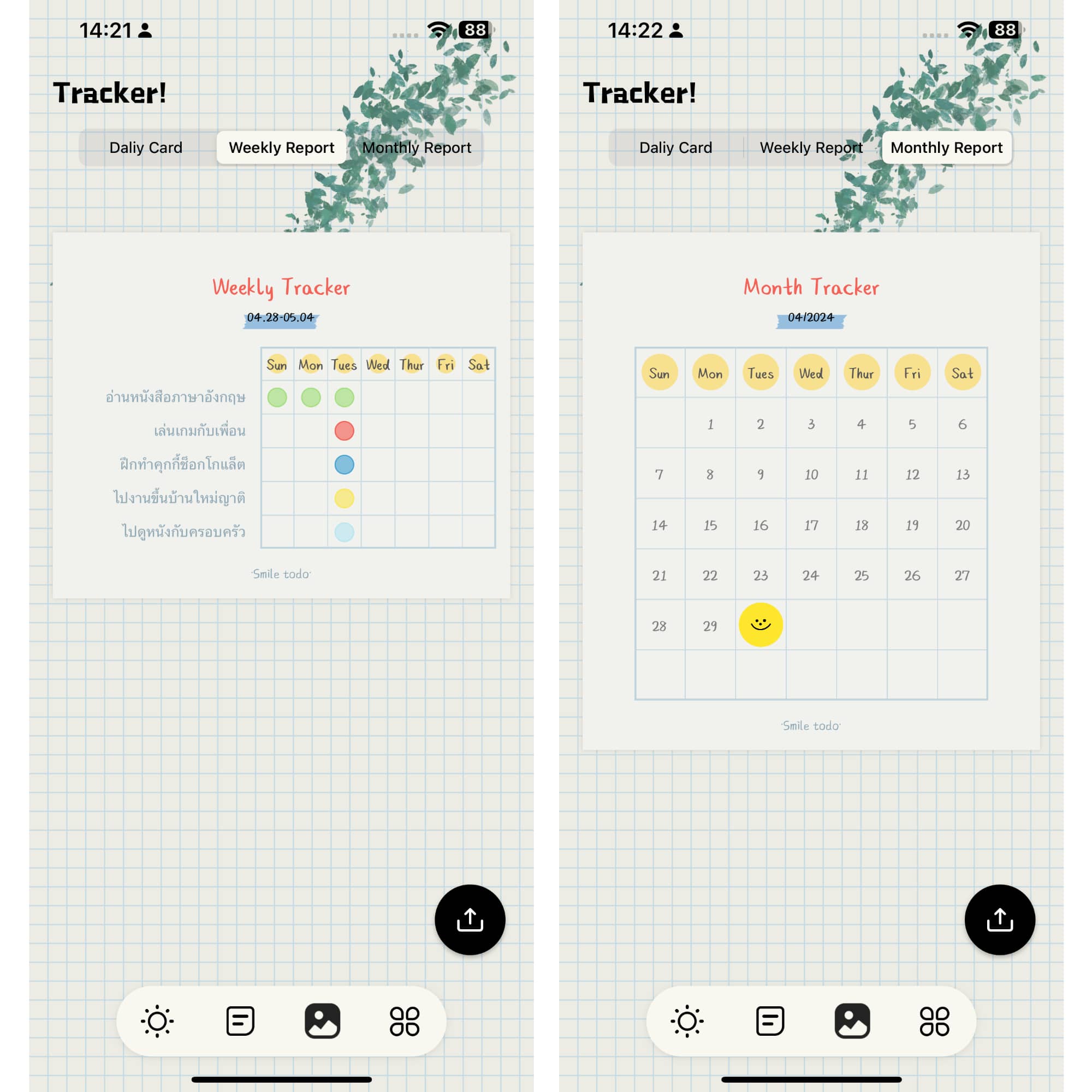 และยังมี Weekly Tracker ในการติดตาม To Do List ที่เราทำในทุก ๆ  สัปดาห์หรือจะเป็นเดือนก็มีเหมือนกัน โดยเราสามารถเซฟรูปเก็บไว้ได้ด้วย
