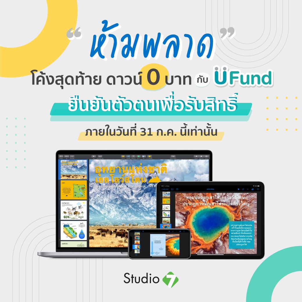 โค้งสุดท้ายดาวน์ 0 บาทกับ UFund นักศึกษาก็ผ่อนสินค้า Apple ได้แล้ววันนี้ที่ Studio 7 ทั่วประเทศ