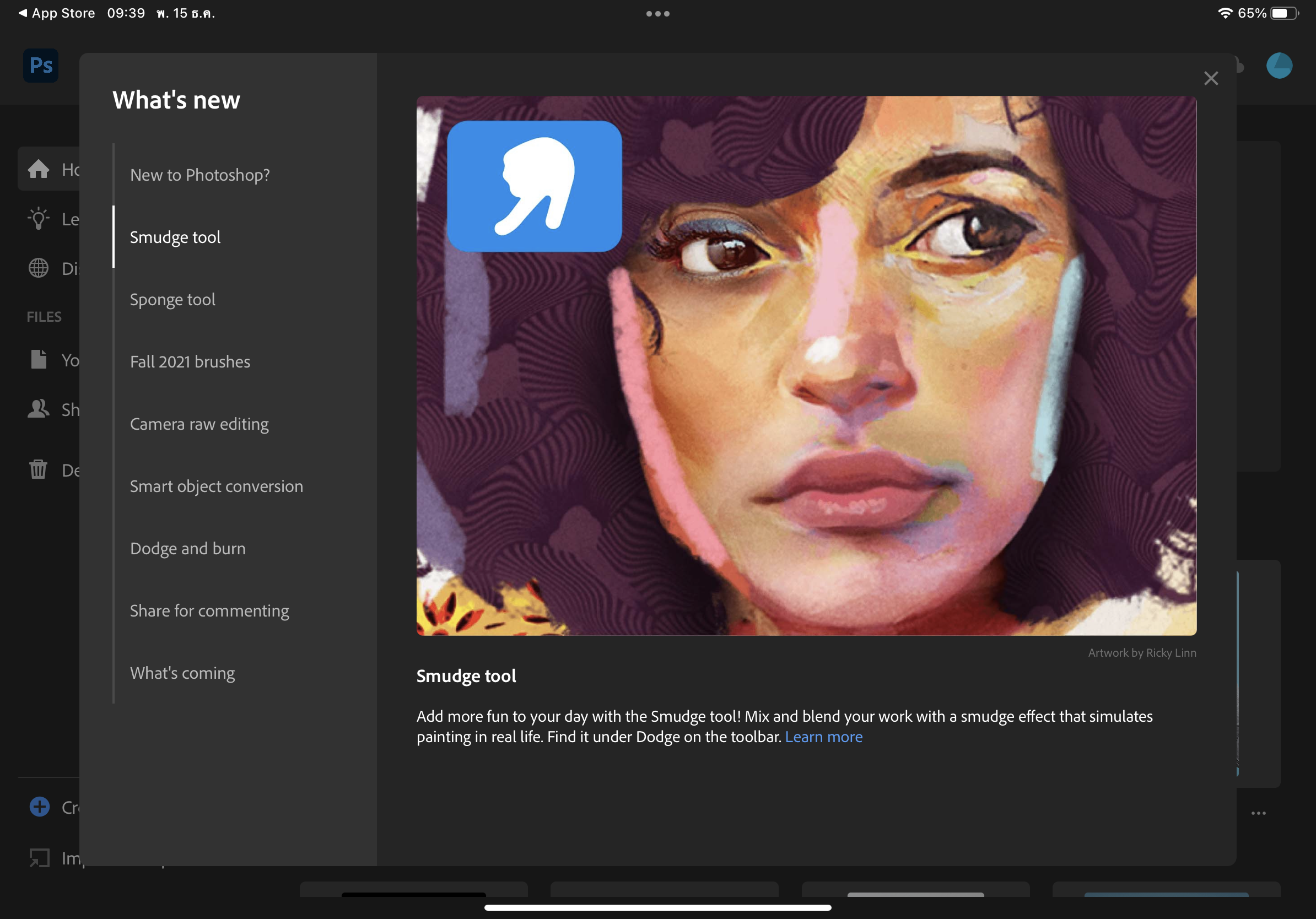 Adobe Photoshop สำหรับ iPad ได้ปล่อยอัปเดตเวอร์ชั่น 3.2 เพิ่มเครื่องมือ Smude tool เครื่องมือที่ใช้ในการเบลนรูปภาพ และ Sponge tool เครื่องมือช่วยปรับความอิ่มตัวของภาพ เข้ามาเพื่อทำให้เราแต่งรูปได้มีประสิทธิภาพและสนุกมากขึ้น