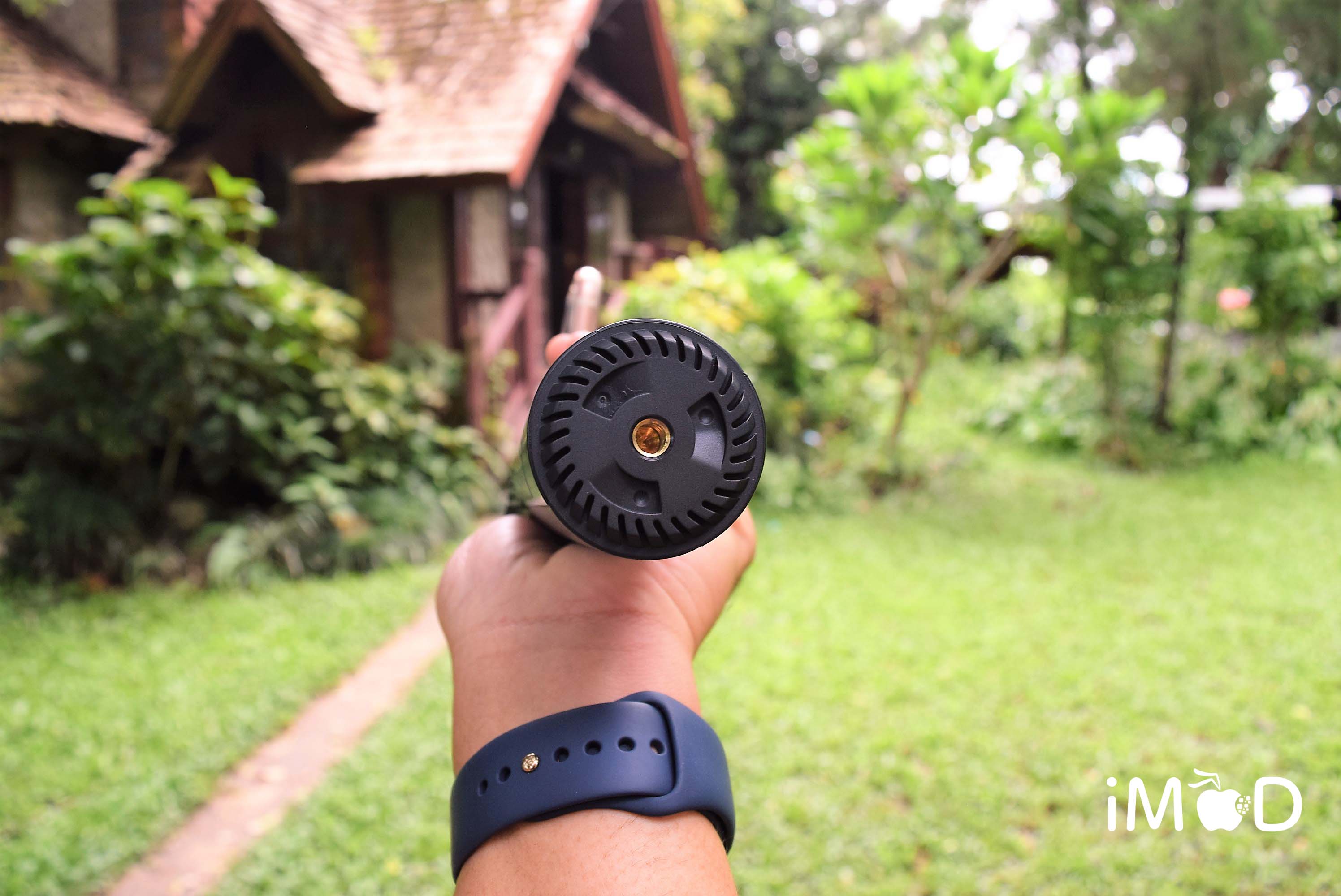 ด้ามจับสามารถกางออกได้ ไว้สำหรับประกอบการถ่ายวิดีโอ มีปุ่มควบคุม 1 ปุ่ม และช่องเสียบสาย microUSB เพื่อชาร์จแบตเตอรี่