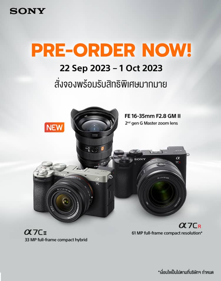 โซนี่ไทยเปิดจองกล้องในตระกูล “Alpha 7C Series” 2 รุ่นใหม่ล่าสุด Alpha 7C II และ Alpha 7CR พร้อมด้วยเลนส์ฟูลเฟรม G Master SEL1635GM2 เลนส์ซูมมุมกว้างที่เล็ก และเบาที่สุด เริ่มตั้งแต่วันที่ 22 กันยายน