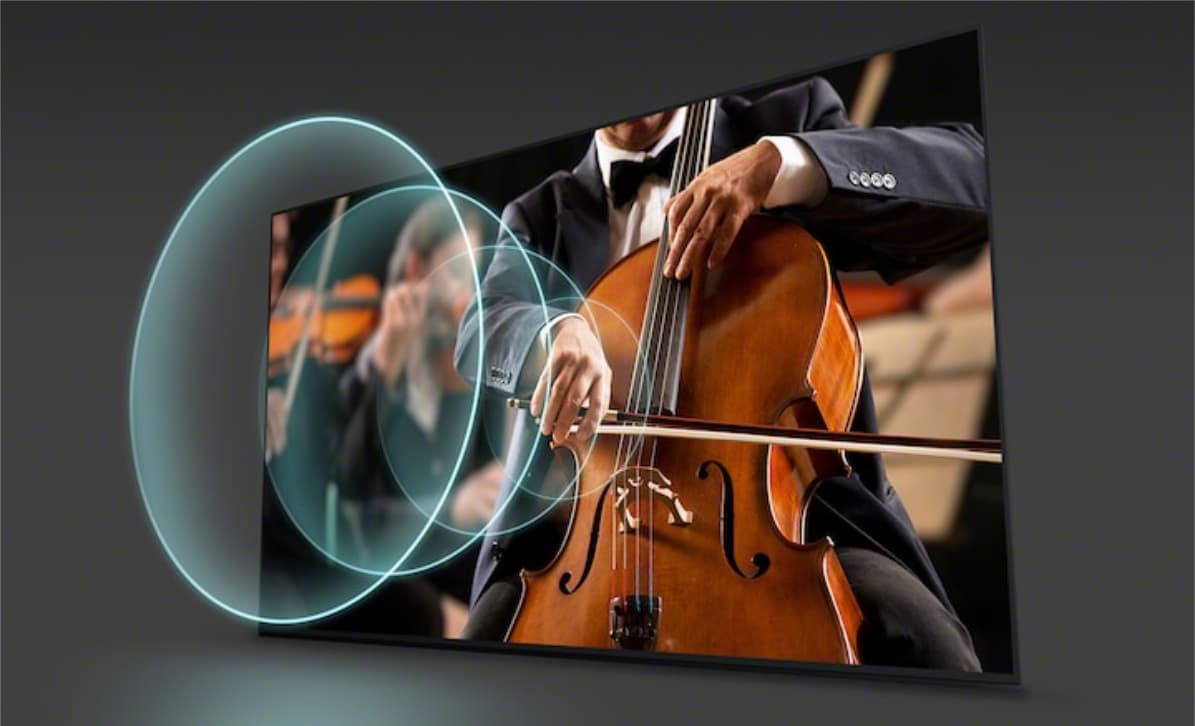 ในขณะที่เทคโนโลยี Acoustic Surface Audio+ ที่ใช้ Actuators แบบพิเศษในการเปลี่ยนหน้าจอให้เป็นลำโพงแบบ Multi-Channel เพื่อให้ได้ยินเสียงที่ตรงกับสิ่งที่อยู่บนหน้าจอได้อย่างแม่นยำ โดยทีวีจะประกอบไปด้วย Actuators ถึงสามตัวและซับวูฟเฟอร์สองตัว ซึ่ง Actuators สองตัวใช้สำหรับเสียงแหลม พร้อมมอบเสียงเซอร์ราวด์แบบโรงภาพยนตร์ ทำให้ภาพและเสียงมีความกลมกลืนกันอย่างสมบูรณ์แบบ