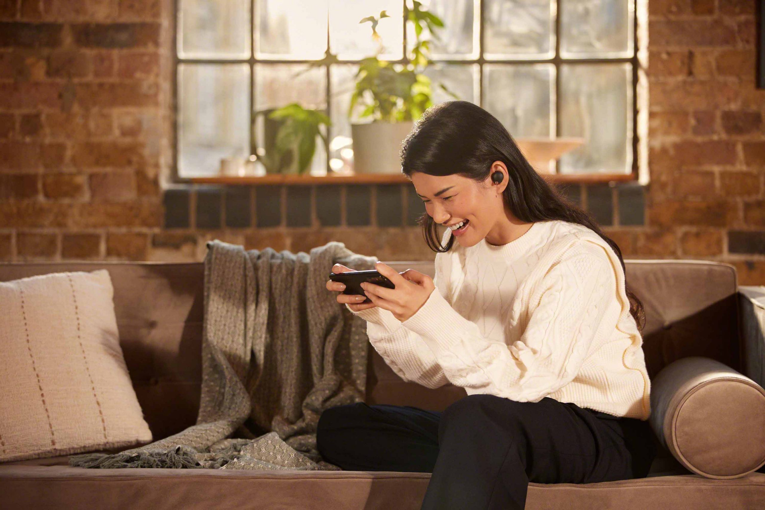 WF-1000XM4 รองรับการเชื่อมต่อไร้สายขั้นสูงได้เป็นอย่างดี โดยระบบจะซิงค์สิ่งที่คุณเห็นบนจอกับสิ่งที่คุณได้ยินบนหูฟังได้อย่างแม่นยำ ทั้งนี้เพื่อให้คุณสามารถรับชมความบันเทิงได้อย่างมีอรรถรส เหมาะอย่างยิ่งสำหรับการรับชมรายการทีวี ภาพยนตร์ ฯลฯ รวมถึงการเพิ่มประสิทธิภาพของอัลกอริธึมผสานการส่งผ่านหน่วยประมวลผล Integrated Processor V1™ ทำให้การเชื่อมต่อ Bluetooth® ชัดเจนและเสถียรมากยิ่งขึ้น แม้ในสภาพแวดล้อมที่มีสัญญาณรบกวนก็ตาม
